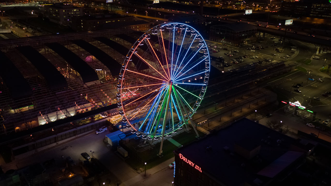 This project includes another round of exciting exterior improvements to the Train Park at Union Station. One of the most anticipated pieces of this project was the St. Louis Wheel, a 200-foot tall Ferris wheel installed near the former Hard Rock Cafe. The wheel features 42 enclosed gondolas and one VIP gondola with leather bucket seats, a stereo system, and a glass observation floor.