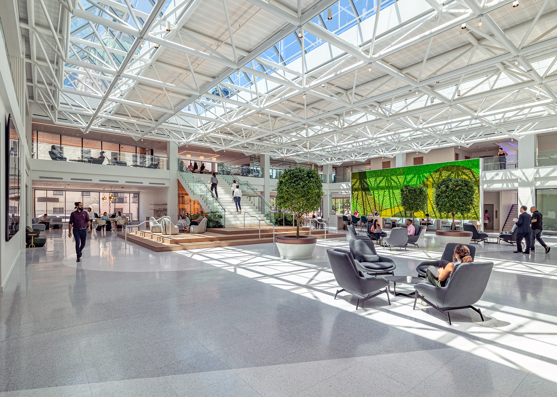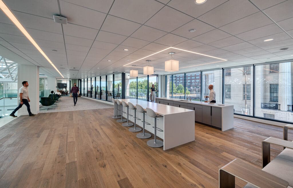 Built in 1977, 100 North Broadway is one of the largest office buildings in downtown St. Louis. The 53,000 sq. ft. renovation of the two-story atrium and surrounding plazas included replacement of the atrium’s glass walls, total HVAC overhaul and upgraded lighting. The PARIC team also completed a wealth of tenant amenities including state-of-the-art conference facilities, co-working lounges, walking track and access to outdoor spaces.