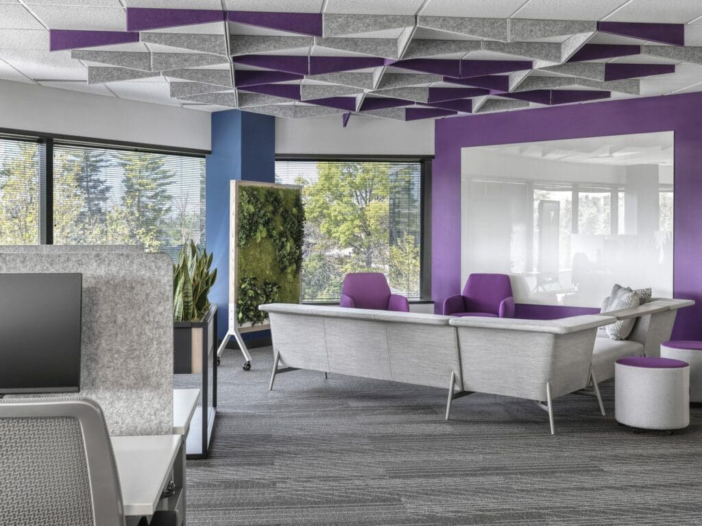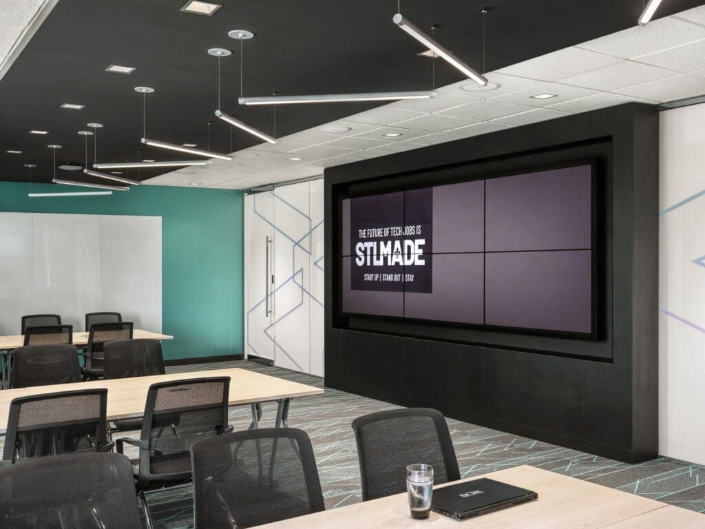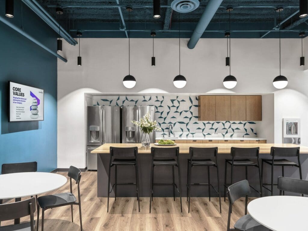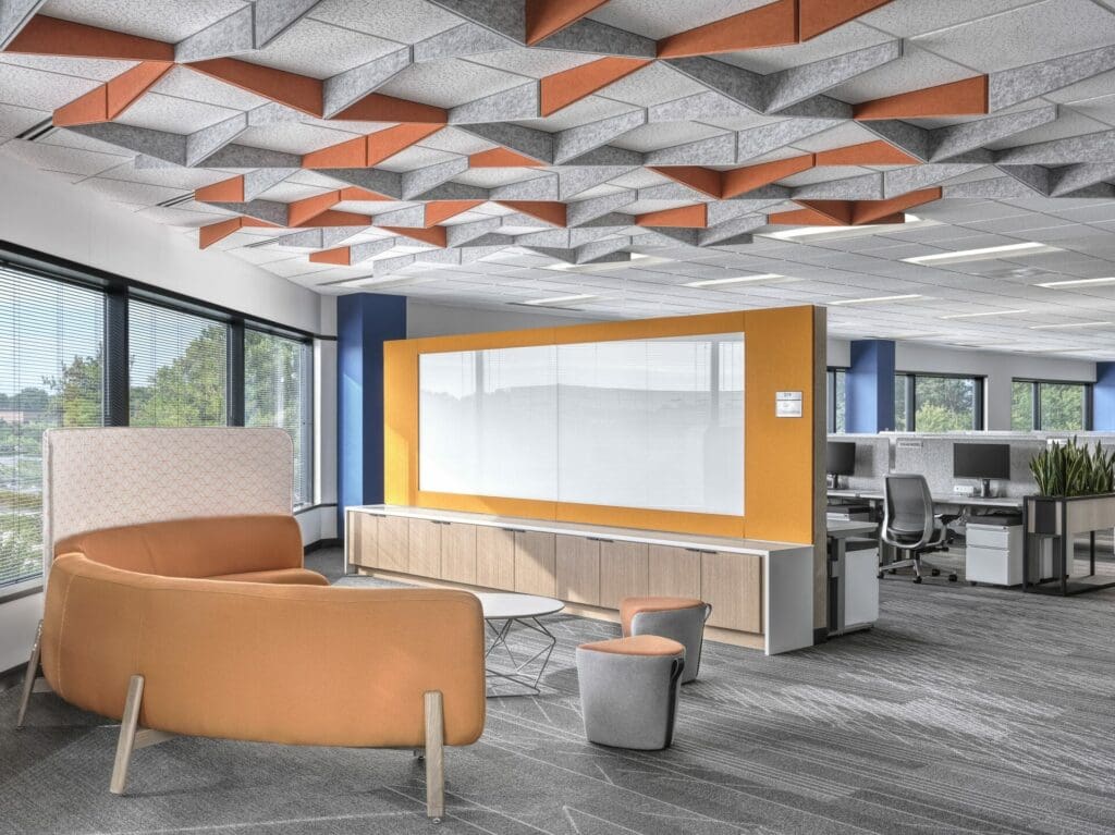 PARIC completed an interior renovation to the Accenture office space in St. Louis, MO in January of 2021. This 23,557 sq. ft. office renovation included open offices, collaboration and conference rooms, a reception area, cafe, mother’s room, wellness rooms, and back-of-house areas. The space features wall coverings, paint, carpet, wood flooring, fabric panels, skyline glass, and back-painted glass.