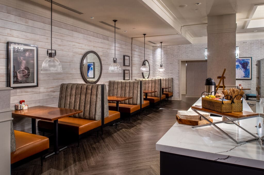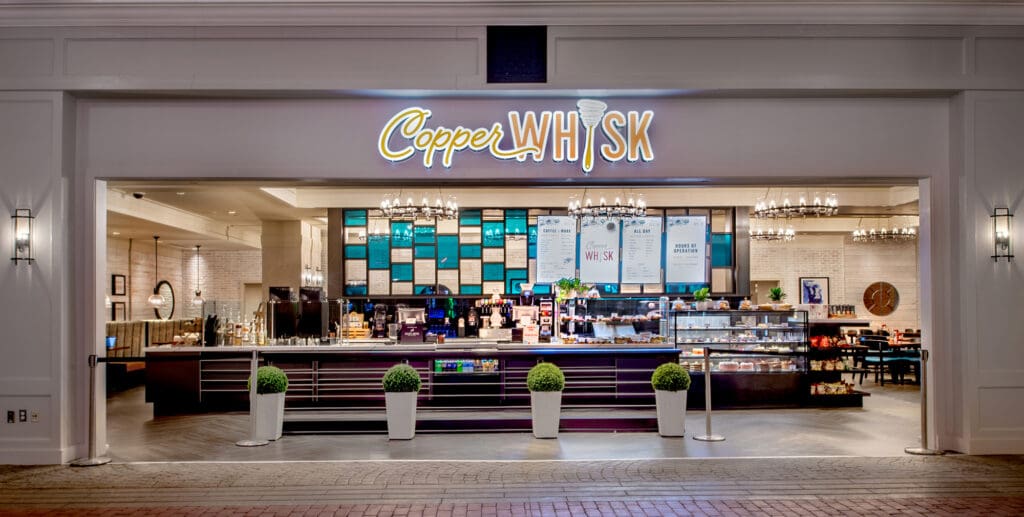 Formerly known as the Falcon Diner, PARIC transformed this 2,350 sq.ft. restaurant space into Copper Whisk, a new, upscale café and bakery offering a warm, inviting atmosphere. Located near the main entrance of the casino, Copper Whisk features an expanded entryway, new service counter area with custom stainless steel casework, new food service equipment, custom display cases, and a glass feature wall. Wi-Fi adapters were also installed to enable robotic meal delivery directly to guests’ tables.