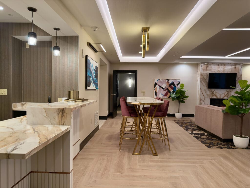 PARIC also completed the design-build renovation of 397 all-suite hotel rooms ranging from 650 to 1,800 sq.ft. The upgraded rooms, which reflect the feel of an upscale high-rise apartment, feature a modern design with bleached oak furnishing, jewel-toned upholstery and contemporary vanities with granite countertops. PARIC self-performed the demolition, drywall, furniture, fixtures and equipment installations, as well as upgrades to 21 corridors and elevator lobbies.