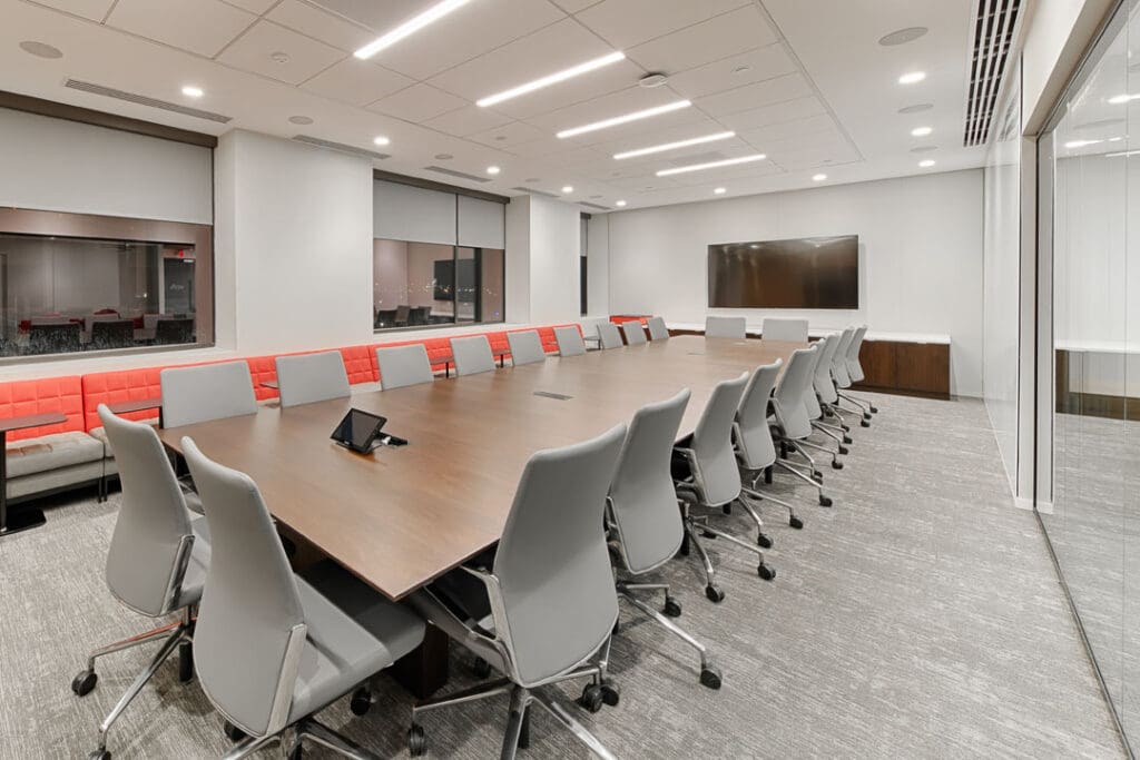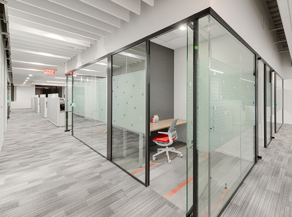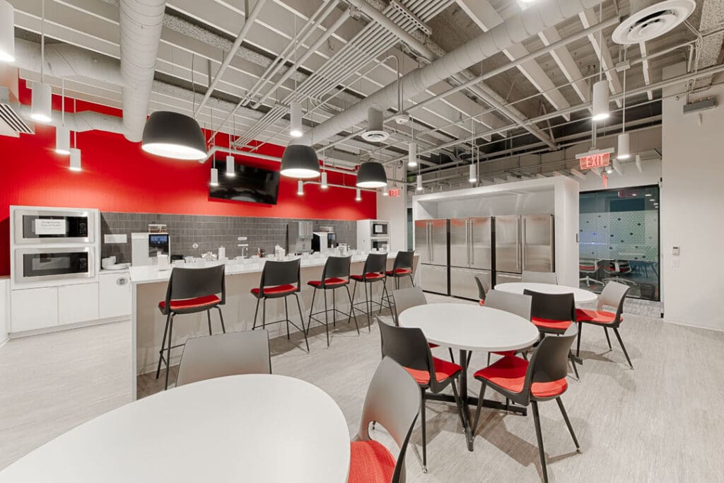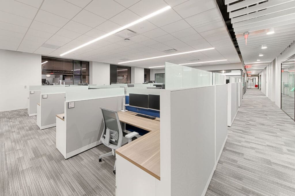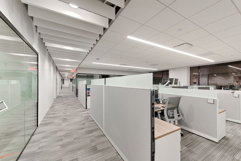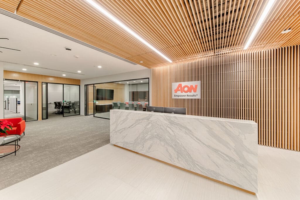 This high-end office renovation for AON Service Corporation is located in the Cortex Innovation Community and showcases modern design coupled with functional open office space. AON’s new office build-out also features a cafe, huddle rooms, and conference rooms.