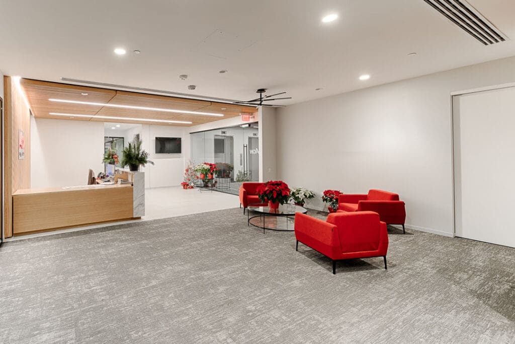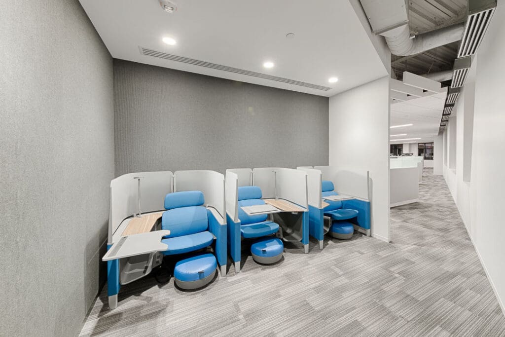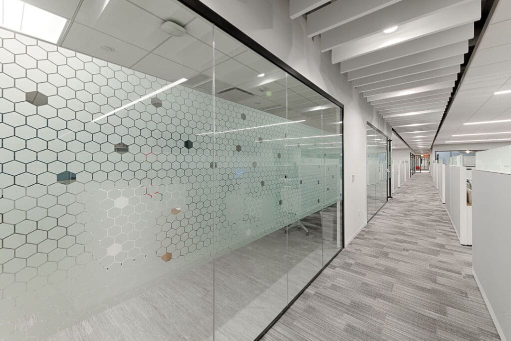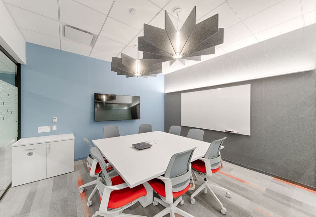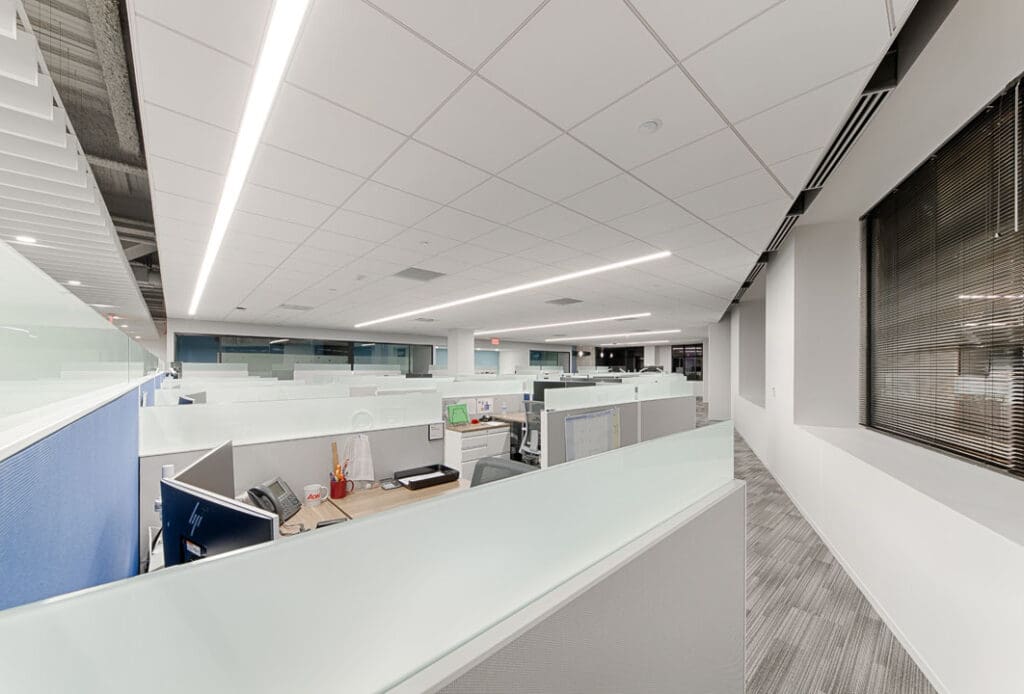 This high-end office renovation for AON Service Corporation is located in the Cortex Innovation Community and showcases modern design coupled with functional open office space. AON’s new office build-out also features a cafe, huddle rooms, and conference rooms.
