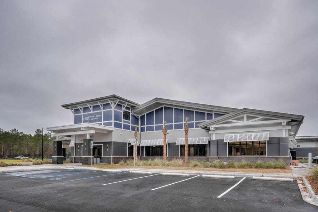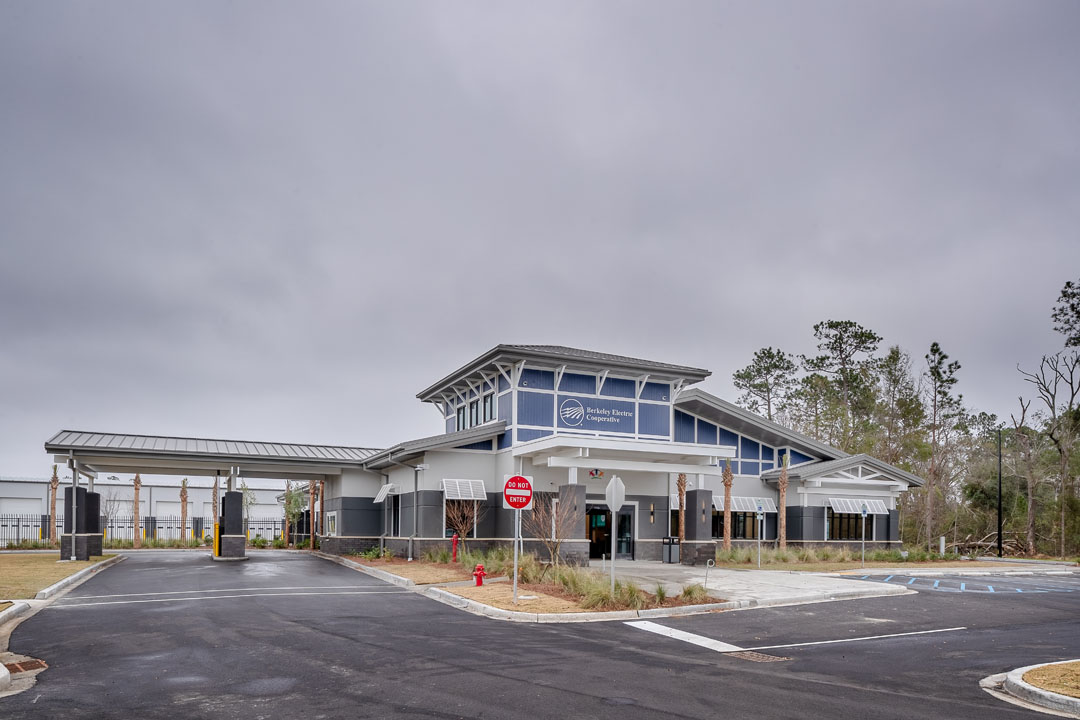 Berkeley Electric Cooperative’s new 108,000 sq. ft. district office facility includes office space, vehicle storage, warehouse space, a vehicle maintenance building, and associated site improvements.