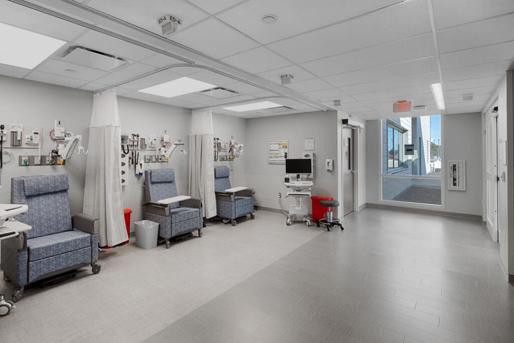 The new hospital, like its predecessor, continues to focus on short-stay surgical and medical cases, including colorectal, gastroenterology, joint reconstruction or replacement, ophthalmology, otolaryngology, plastic surgery, spine, thoracic, urology and vascular surgery.