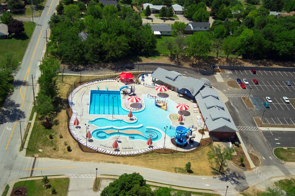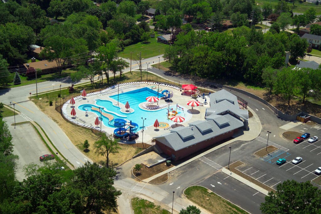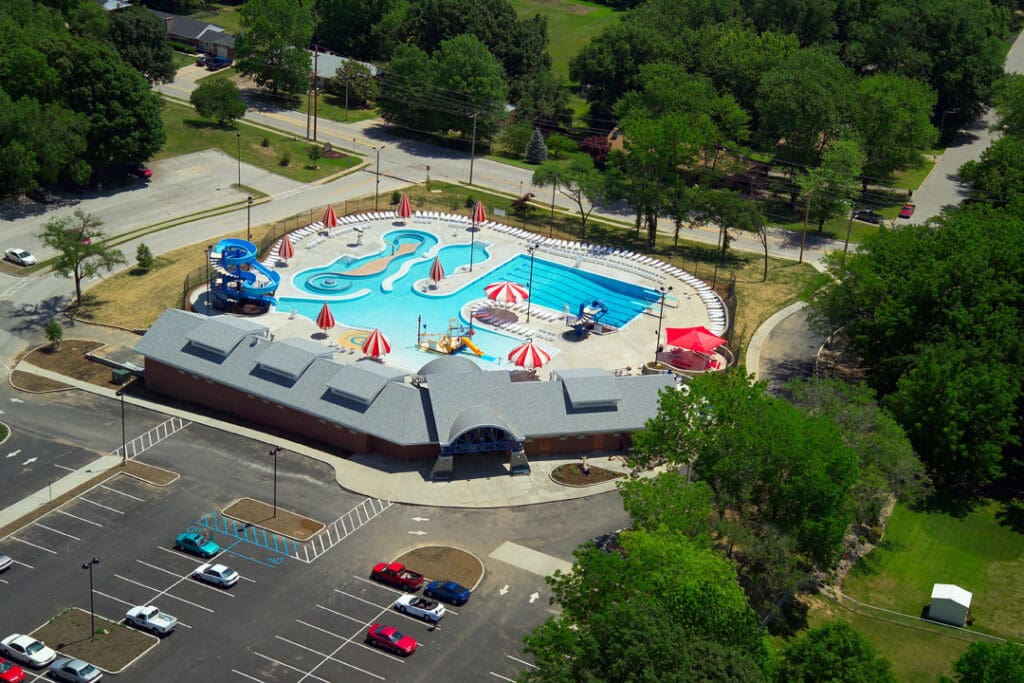 The Bridgeton Crossing Family Aquatic Park is a 50,920 square foot outdoor family aquatic park and multi-purpose center. The facility includes a swimming pool with a lazy river, two slides, play structure, and competition pool. The main structure houses offices, equipment room, concession stand, showers, and bathrooms.