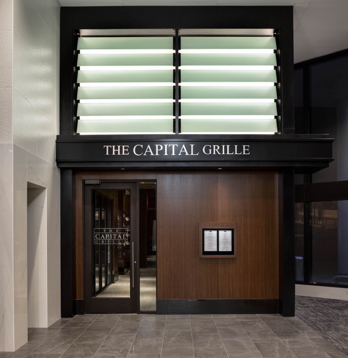 The $3.5 million Capital Grille high-end restaurant project included expanding the existing square footage of the site from 6,130 sq. ft. to 8,782 sq. ft., replacing the existing semi-circular restaurant entrance, and converting the existing space with a full-service kitchen and bar area, and seats over 250 people. This project is located on the 1st floor of 101 S. Hanley Road in the Hanley Corporate Tower in Clayton, Missouri.