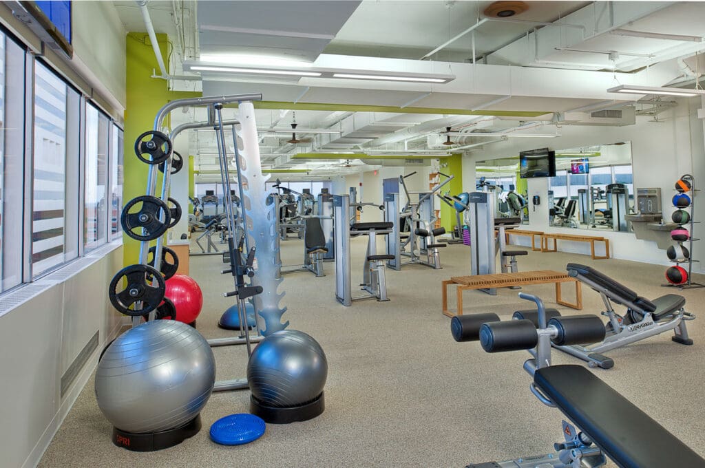 PARIC completed the 6,300 sq. ft. fitness center for Centene Corporation. The space includes a full fitness area, a room for classes, locker room, and lounge area.