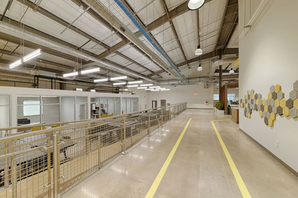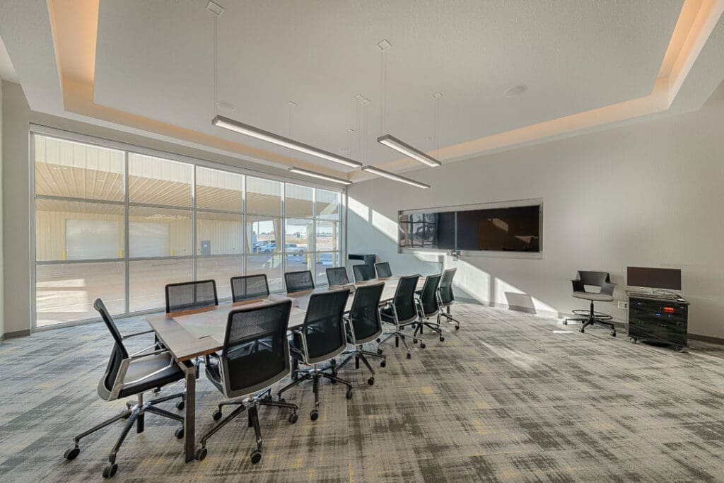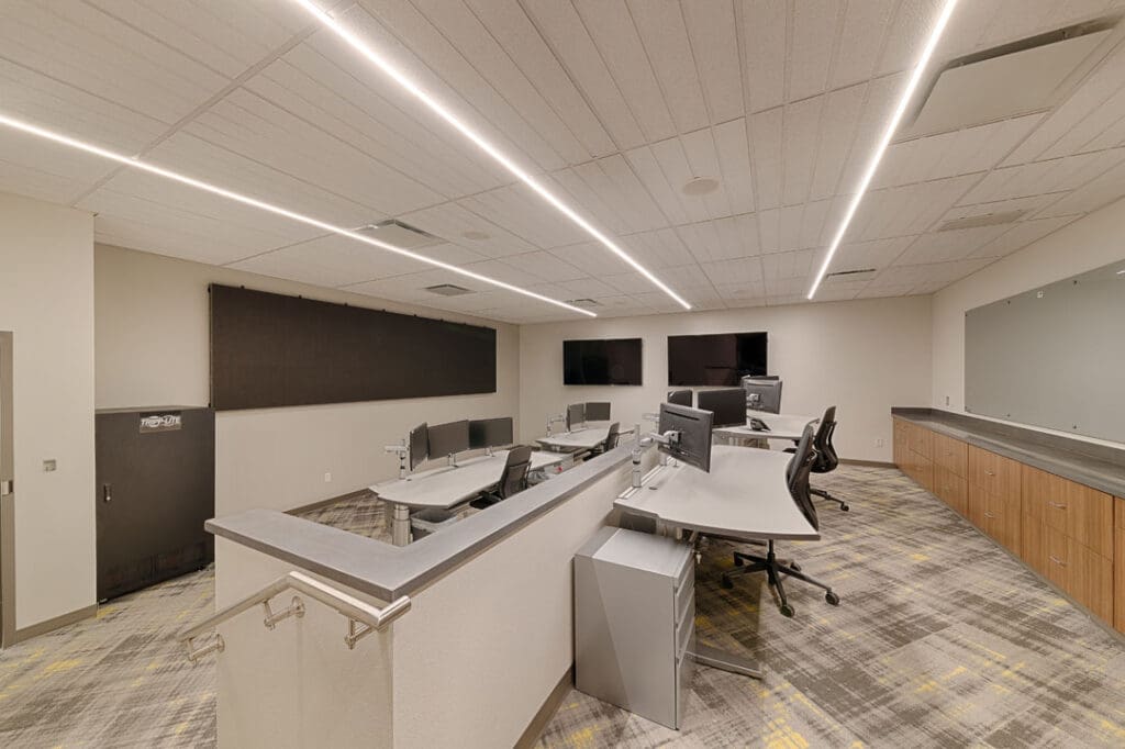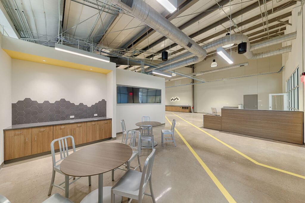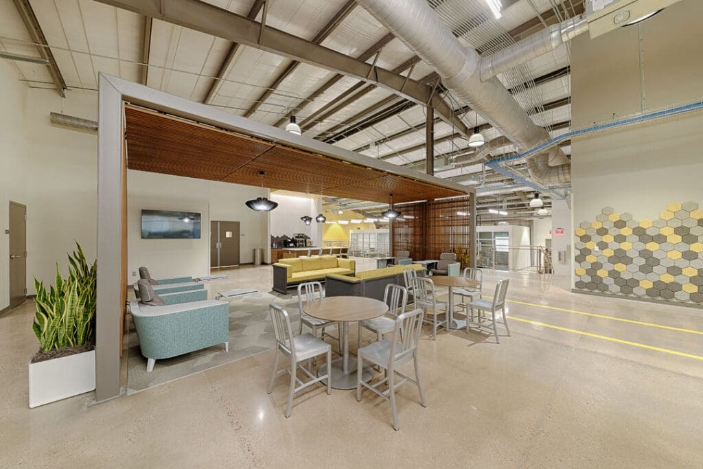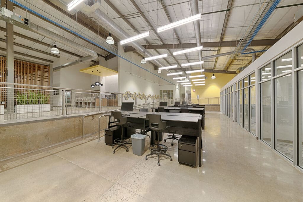 The existing warehouse was transformed into a new engineering and operations center and with an open concept office with an industrial feel. The original warehouse building was built with a pre-engineered steel building design and was modified to increase natural daylight into the space. A storm-hardened area for disaster recovery and protection of critical operations was also added.