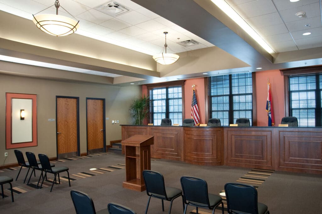 PARIC was the construction manager for a new 15,888 sq.ft. city hall and police station for the City of Cottleville, Missouri. The facility is LEED certified – the first for a municipality in St. Charles County. City Hall’s Green features make more efficient use of energy, water and other resources, lowers operating costs and results in a building that provides a more healthful environment both inside and outside. Inside, natural light, low-emitting construction materials, movement-activated off/on lights and multi-thermostatically controlled comfort zones provide a healthful, energy-efficient environment. Outside, rain gardens filter and treat stormwater runoff, Cool Roof Rated shingles reduce the heat island effect, special street lamps reduce night-sky light pollution, and wetlands are restored.