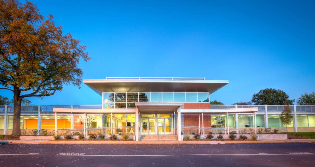 Renovations to the City of Ferguson Community Center included a state-of-the-art recreational facility, complete with a spacious lobby, a fitness/cardio center, a basketball/volleyball court, a game room, an internet café, a childcare area, an outdoor patio, and additional multipurpose space for community use. This project also boasts several unique construction features, including: a multi-radius wall in the multi-purpose room, curtain wall at the lobby and storefront glazing along the North Wing to give the building an open look, raised roofs in the lobby and fitness center with new structural steel framing/decking to give the building a taller look, as well as floor-to-ceiling windows in the fitness center providing sweeping views of the beautiful green space outside the rear of the building.