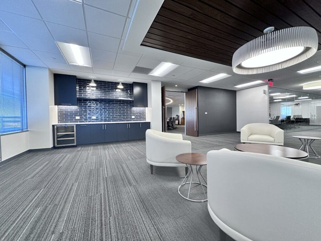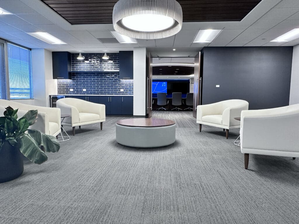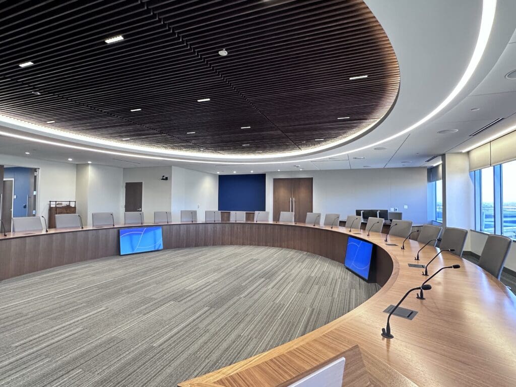 This project consists of the renovation and creation of executive offices and executive boardroom with an executive lounge. The boardroom was designed around the existing board room table being relocated. This space includes architectural designs such as the custom sculpted ceiling along with integrate technology including the tracking cameras and extensive A/V components. The offices included touch-ups of existing offices along with full construction of additional offices within the space. The project was completed in phases to accommodate the needs of the client and their leadership team.