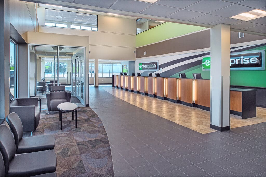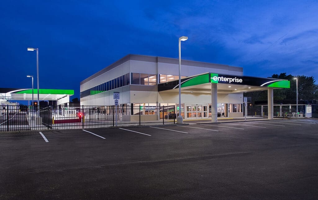 PARIC completed construction on the new Enterprise Rent-a-Car Airport location. The project is comprised of three buildings, 13,500 sq.ft. office building, the 3,700 sq.ft. car wash/maintenance building and the 500 sq.ft. fuel utility building, all spanning a five-acre site.