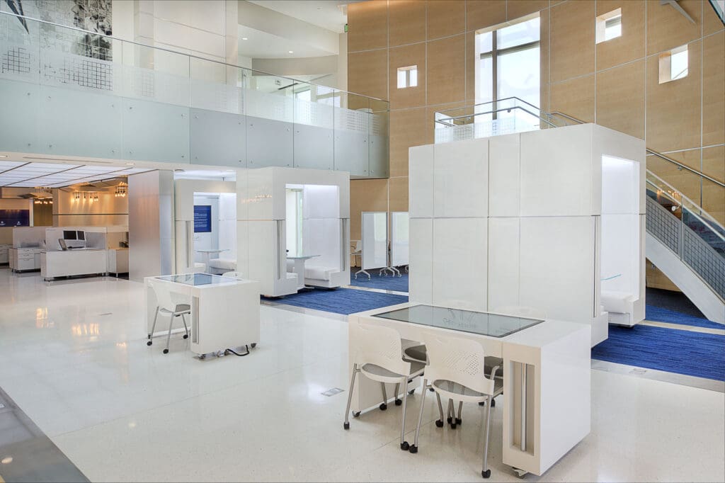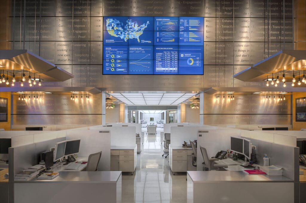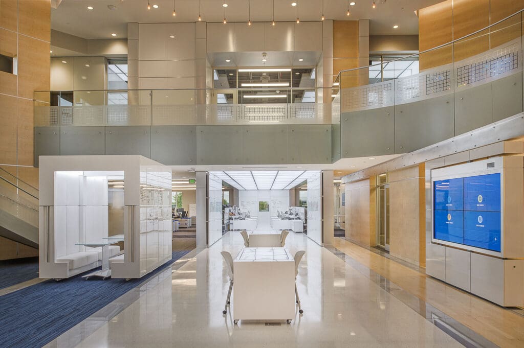PARIC completed construction on an expansion of Express Scripts, Inc.’s headquarters facility in St. Louis, MO. This 13,000 sq. ft. project consists primarily of office space, and was constructed using concrete tilt-up, curtainwall skin, and structural steel. Some of the unique and notable features of this development are the dynamic, movable workstations and monitor arrays that move along the floor of the office. Among the finishes used were: carpet, paint, wood wall paneling, metal wall paneling, back-painted glass, solid surface countertops, terrazzo flooring, and wood flooring. This entire project was completed using power from a back-up generator, and was constructed while allowing Express Scripts to continue running three shifts of work daily without a shutdown.