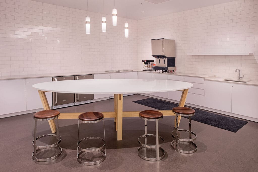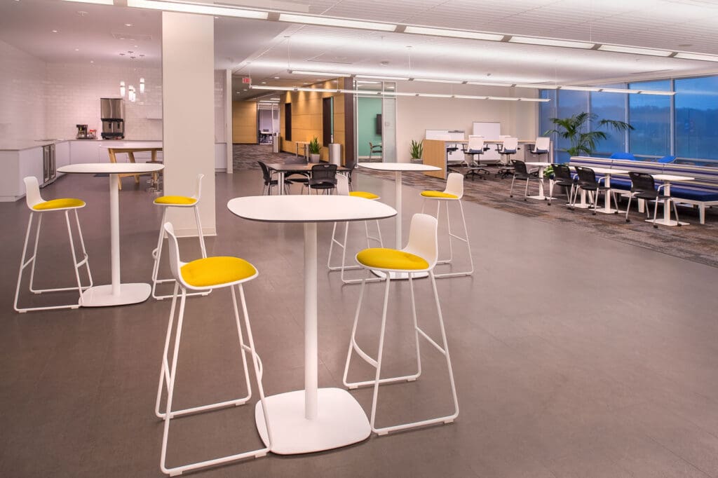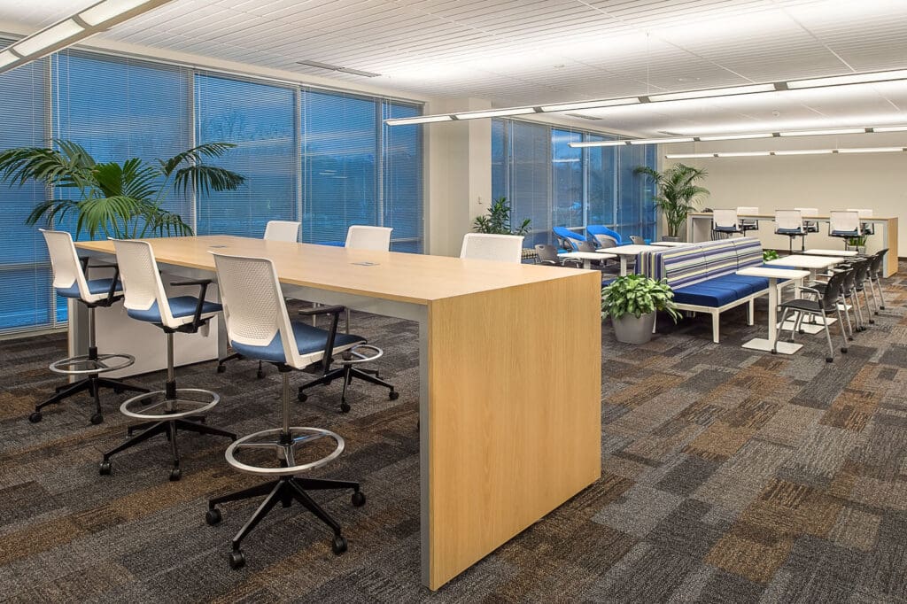 The HQ2 renovations included 24,500 sq. ft. of office space renovations which added offices, converted an open office space to an IT service area, as well as renovation on the lower level that extended the cafeteria and dining area, and added conference rooms.