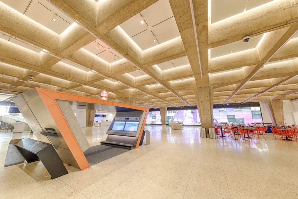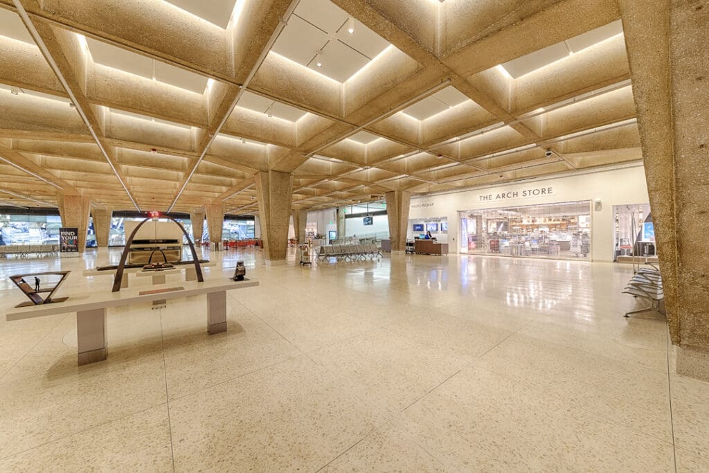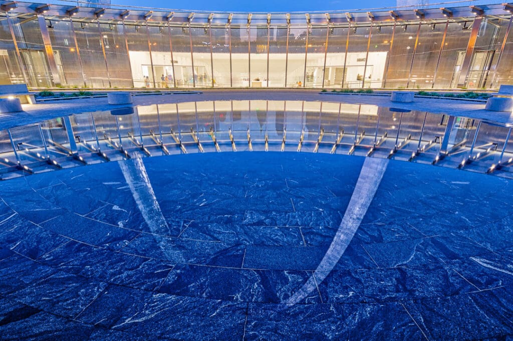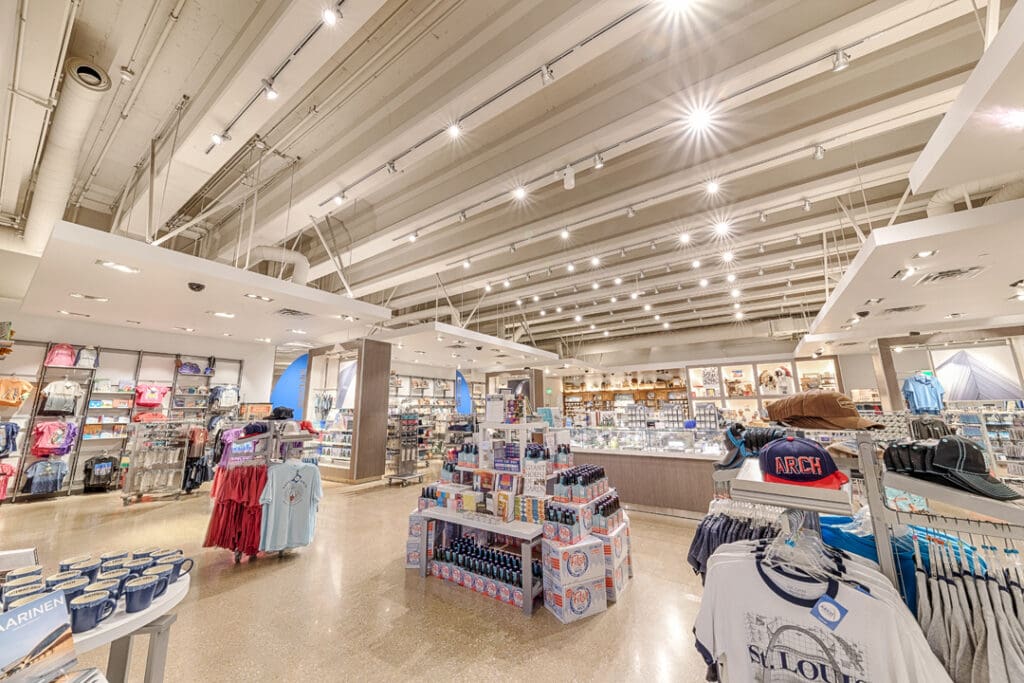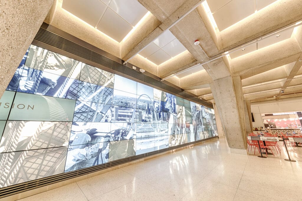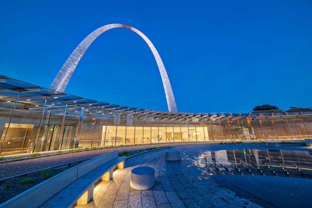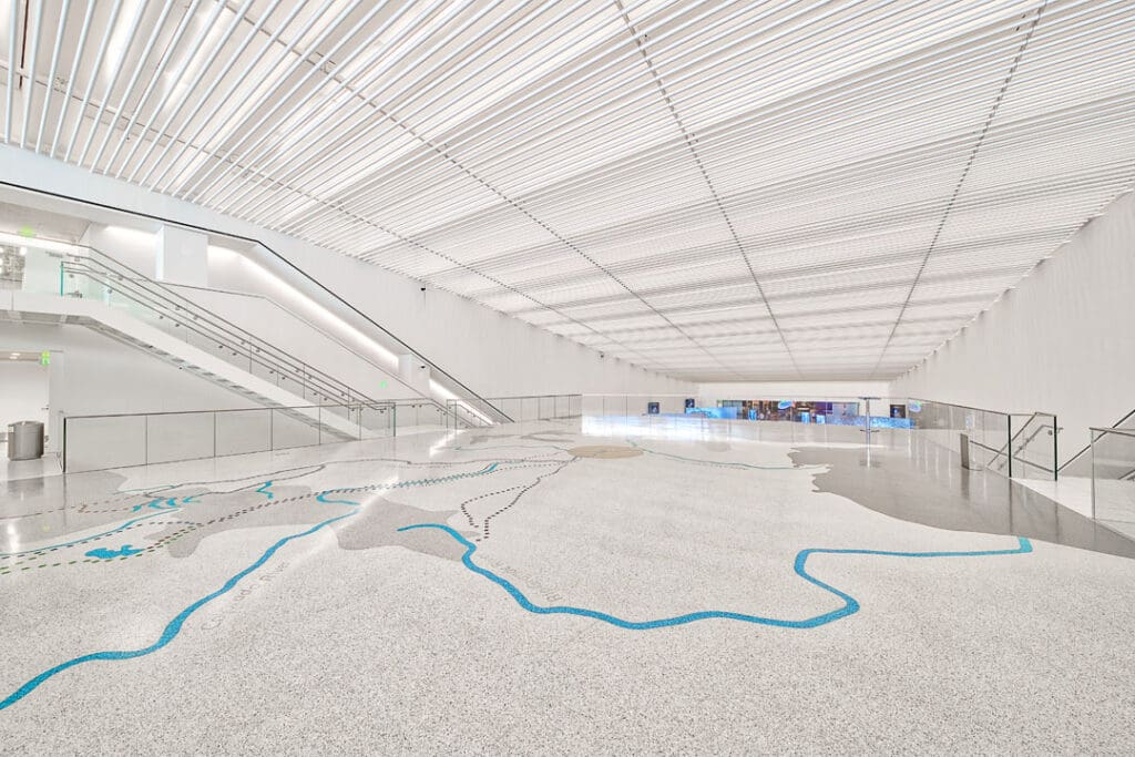 The updated Arch museum features a curved glass entrance, cut into the ground with a water feature in the center. 46,000 sq. ft. were added to the museum, to create a more open feel, and new lighting was added throughout.