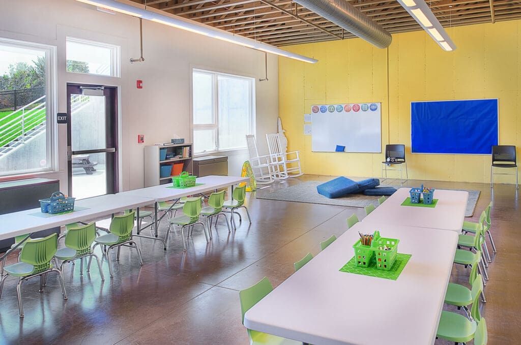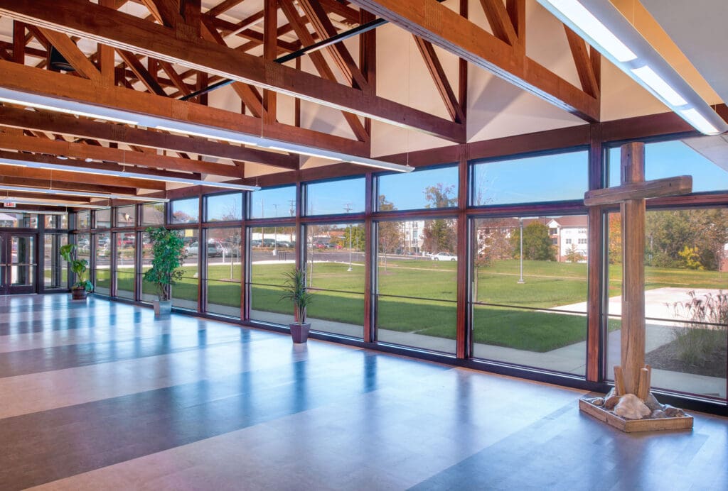PARIC has completed construction on Greentree Community Church in Kirkwood, Missouri. This two-story, 22,500 sq. ft. religious facility is comprised of wood-framed construction and Hardie lap siding. The Sanctuary and Fellowship Hall areas feature large windows, exposed wood stained trusses on the ceilings, tectum roof panels, and state-of-the-art audio/visual and theatrical lighting systems.