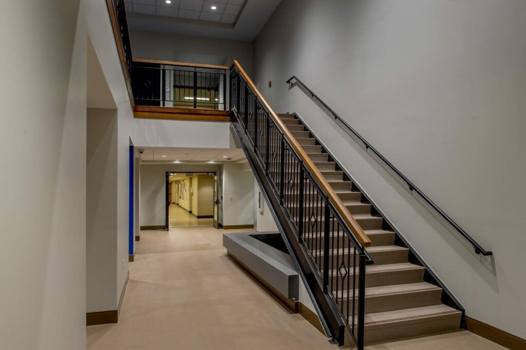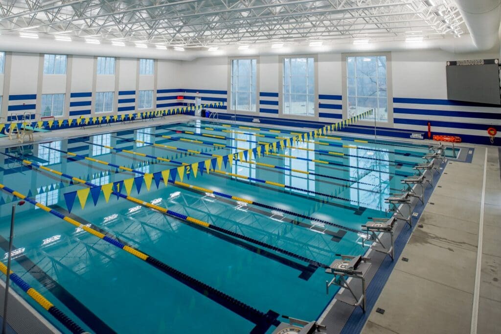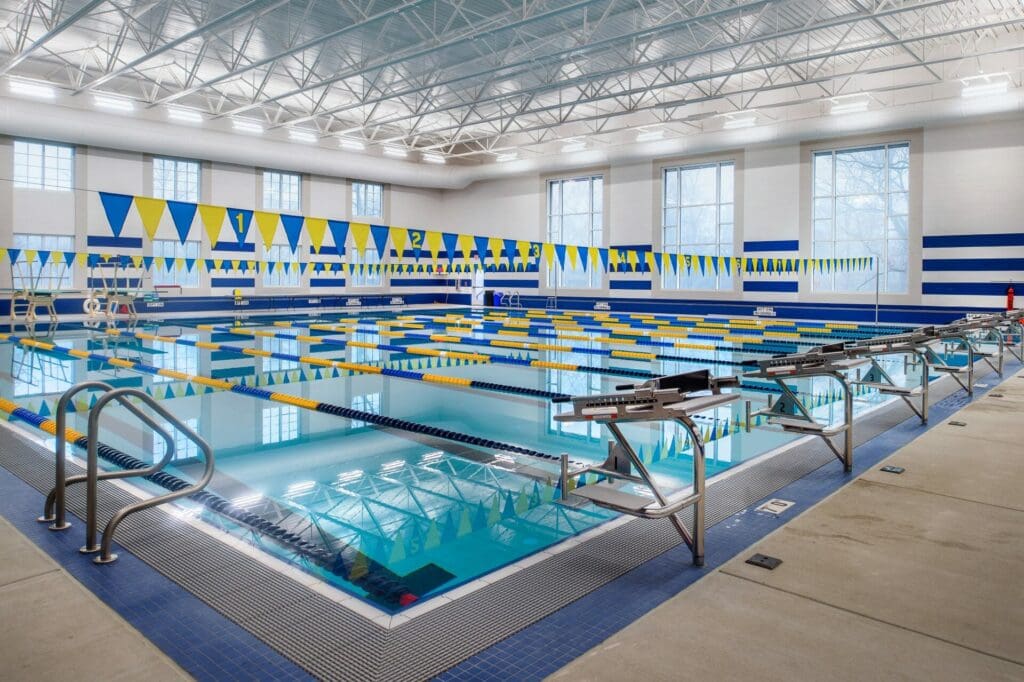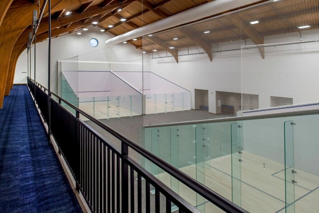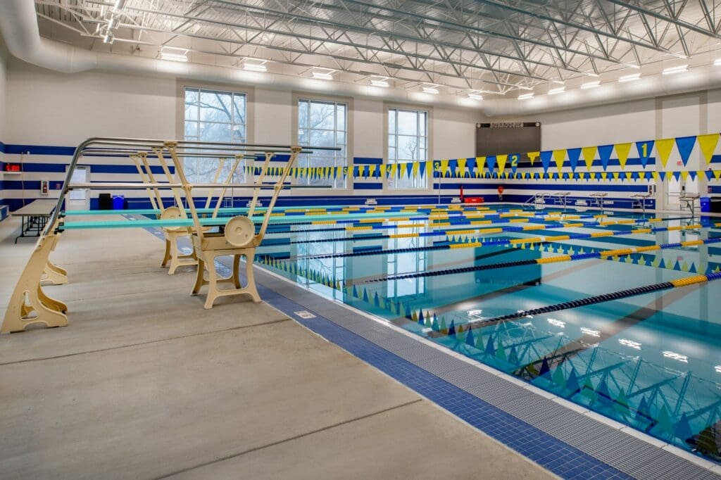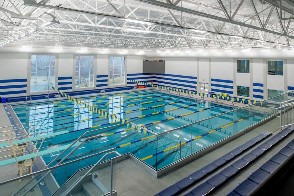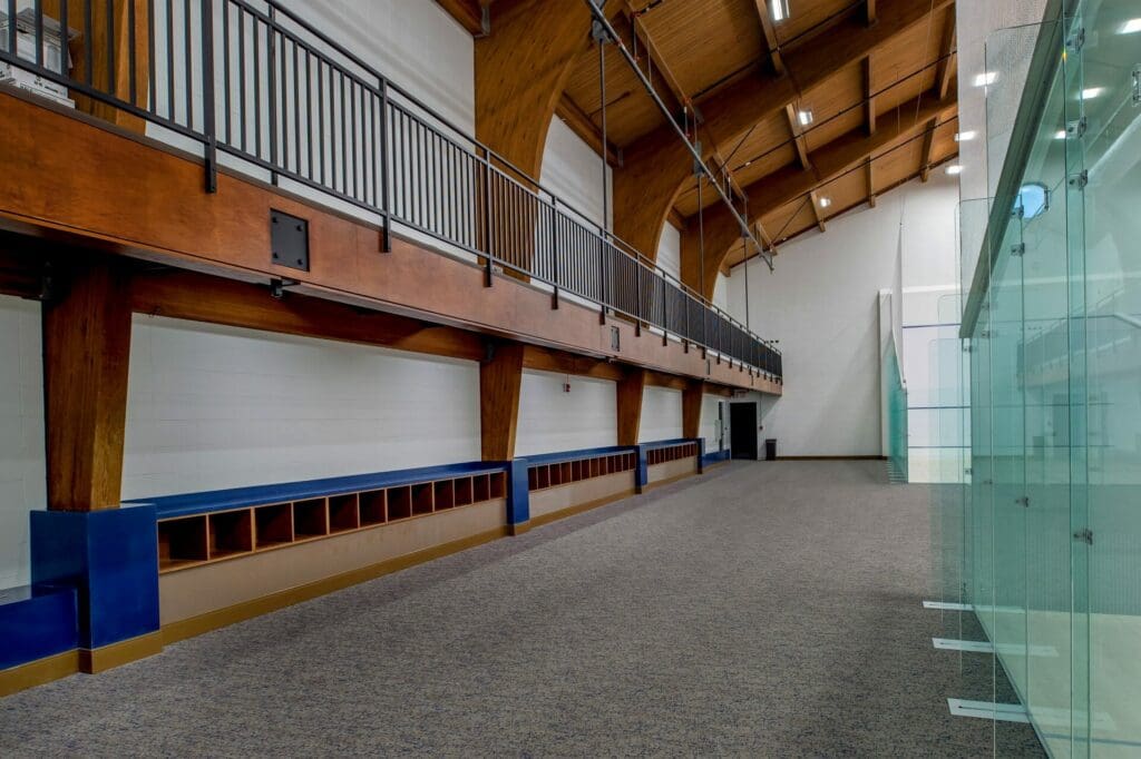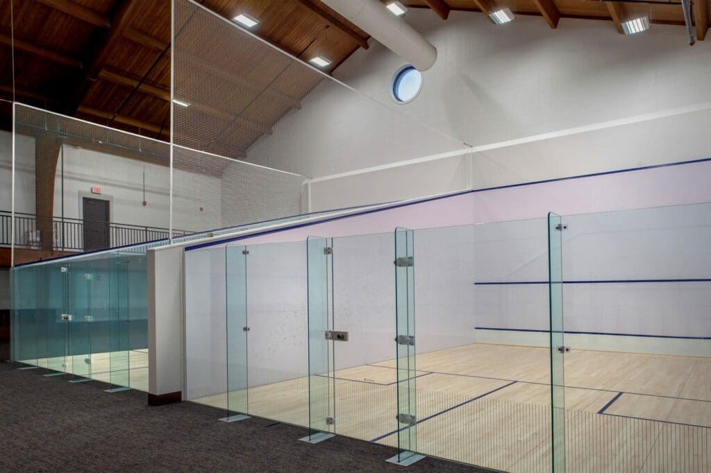 JBS’s Athletic Expansion included a two-phase natatorium and squash courts project. A new 20,000 sq. ft. natatorium with an eight-lane, 25-yard short-course pool and a 200-person viewing area was completed first, followed by new locker rooms and restrooms, mechanical and equipment/storage rooms, and a pre-function space that opens to the quad. Sitework included utility relocation and under-drain system implementation to accommodate existing soil conditions. Phase 2 included renovating the old pool space into four regulation squash courts with flexible playing space and a viewing area.