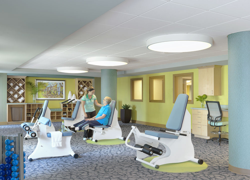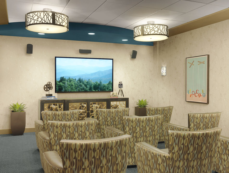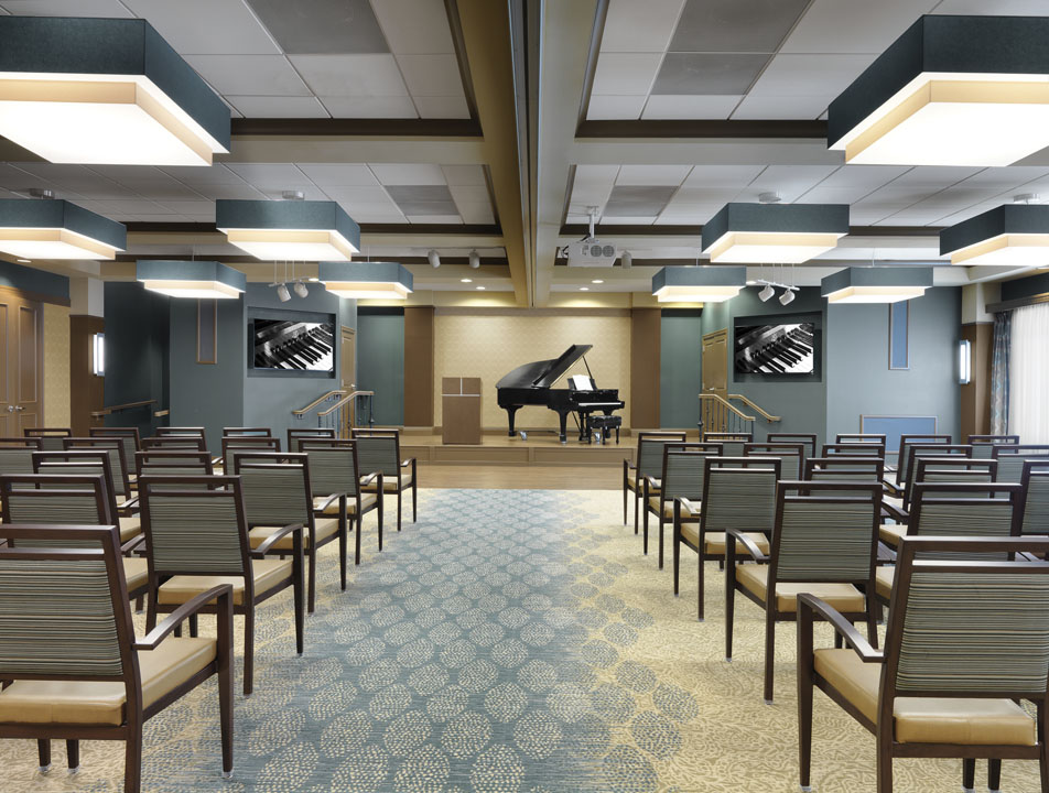 The central commons building was remodeled to include a bistro, media center, lounges, an arts & crafts room, theater, library, and exercise rooms to improve the quality of life for all residents. An expansion to the commons building included a full-size auditorium equipped with acoustical wall panels and a complete audiovisual system catered to the hearing impaired.