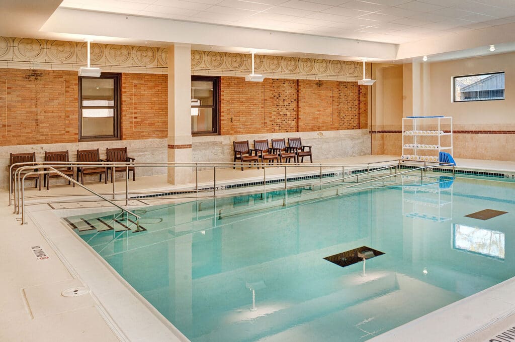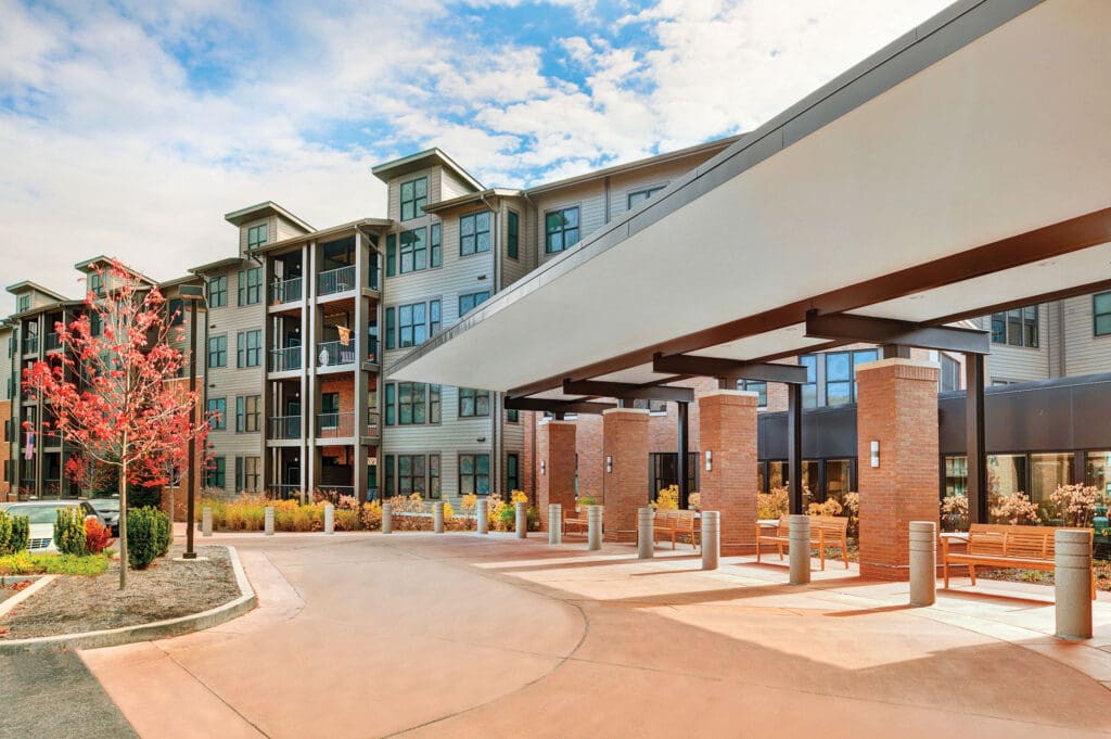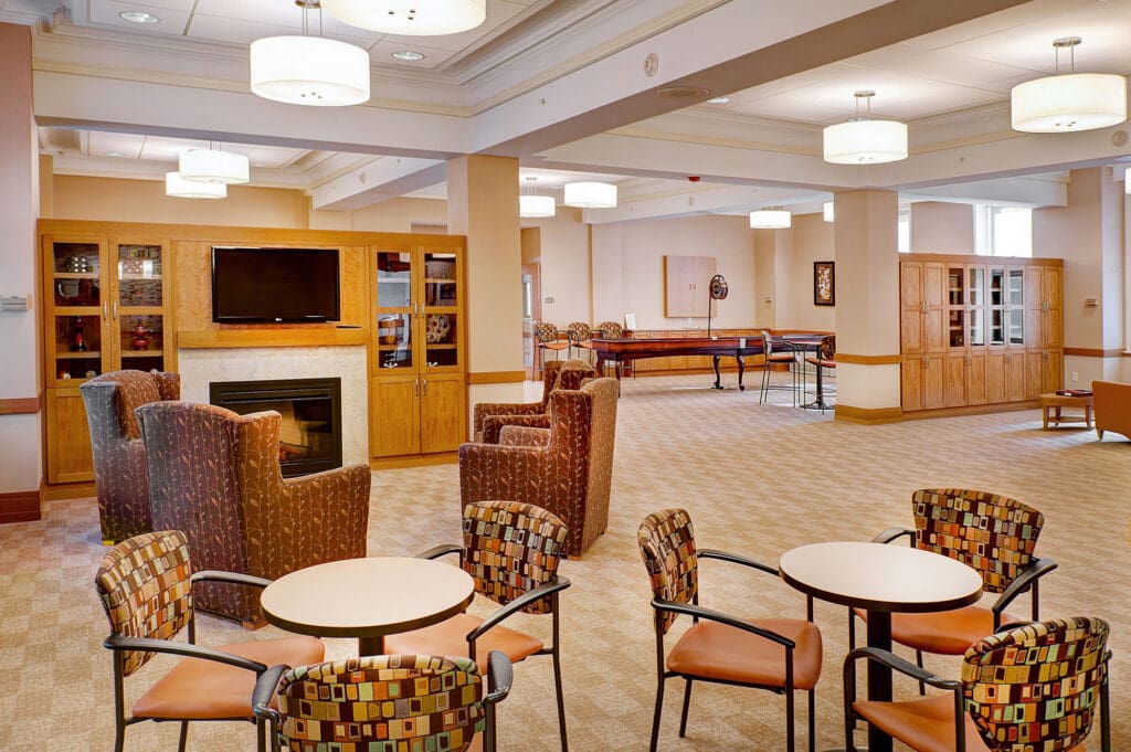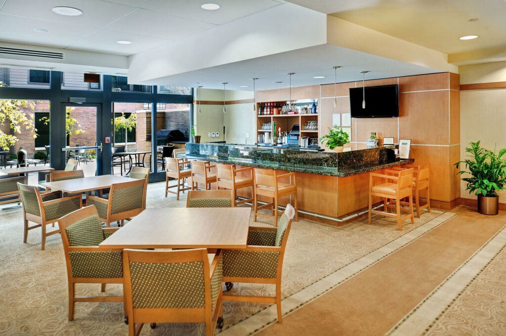 Work included a four-story, 60 bed addition to the skilled nursing facility, renovation of the existing skilled nursing facility into households, interior demolition and reconstruction of 30,000 sq. ft. of the Town Center Building, a new 80 unit independent living building with below grade parking. A 3,000 sq. ft. therapy pool addition, and a new single-story bistro and fine dining venue were also constructed.