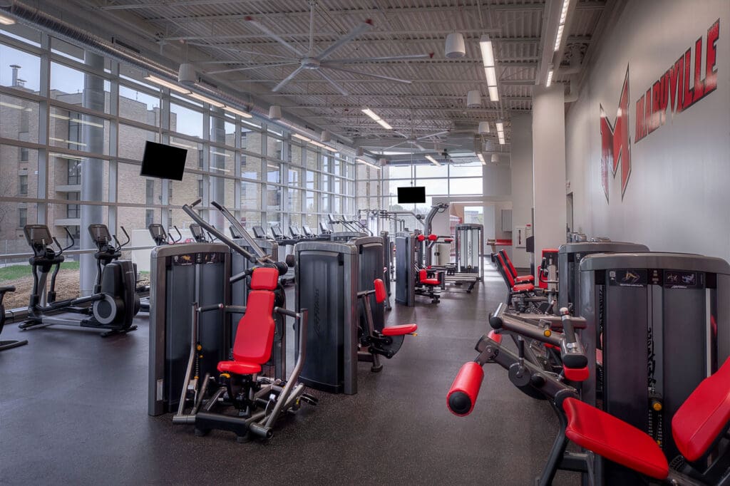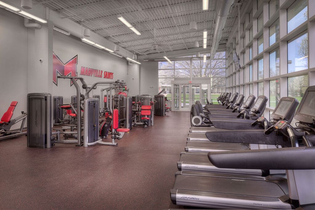 PARIC completed the renovation and addition to Maryville University’s Simon Hall in the spring of 2016. Renovations including 3,100 sq. ft. of workout space and 4,260 sq. ft. of athletic staff offices, which were relocated and renovated. The renovation also included the addition of a high-tech conference room for video viewing.