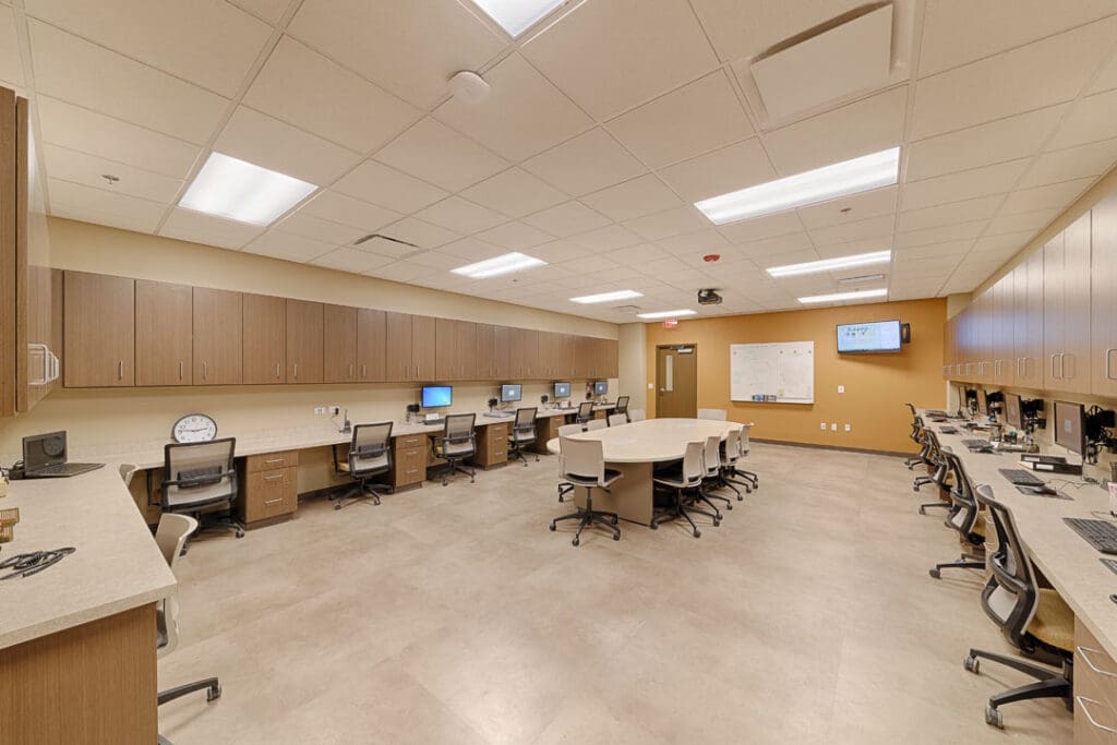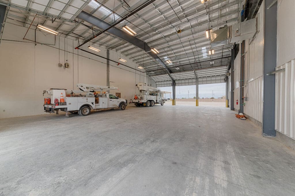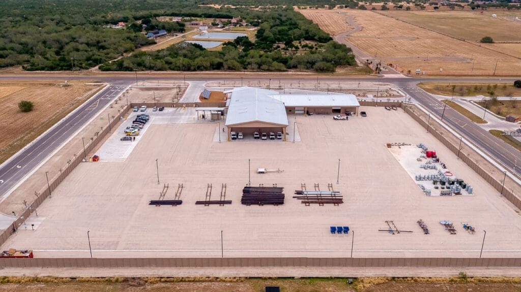 Medina Electric recently relocated their Rio Grande City office to a new 8-acre site in town. The new facility consists of a 9,500 sq. ft. office building, a 6,000 sq. ft. warehouse, a 6,000 sq. ft. vehicle storage building, and a 2,700 sq. ft. covered parking structure. The entire structure was designed as a pre-engineered metal building, including brick and metal panel façade. The facility utilizes LED lighting throughout, rainwater collection for irrigation, and other high-efficiency design concepts. A hardened space was constructed to protect sensitive IT servers and infrastructure. The new secure site is now surrounded by an 8 foot-tall concrete fence, along with access control throughout the facility.