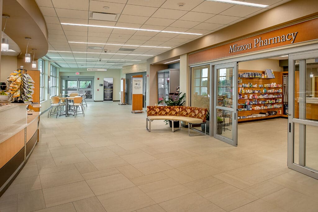 This 106,930 sq. ft. four-story addition and expansion to the existing facility on the University of Missouri campus includes space for inpatient, outpatient, and other services. The expansion includes five additional operating rooms, 22 additional private inpatient rooms, three additional digital X-ray rooms, 19 additional outpatient examination rooms, a fourth floor dedicated to orthopedic research, larger dining facilities for patients and visitors, and a new coffee kiosk in the main entrance lobby.