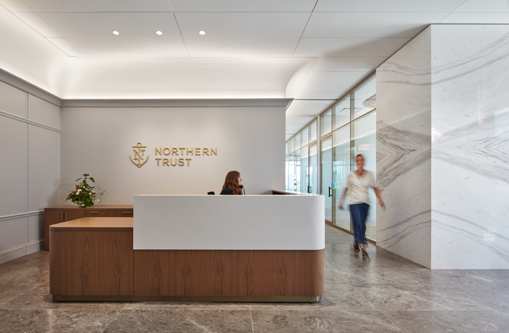 Northern Trust Company selected PARIC for their $1.7 million tenant improvement project when the firm relocated their Clayton, MO office to a newly constructed building. This project included a hight-end interior office fit-out of the 7th floor of the Forsyth Pointe Building with five conference rooms, lobby space, library, mother’s room, teller room, and breakout rooms. Finishes to the office included featured walls, wood slack ceilings, glass partitions, and floor-to-ceiling marble walls.