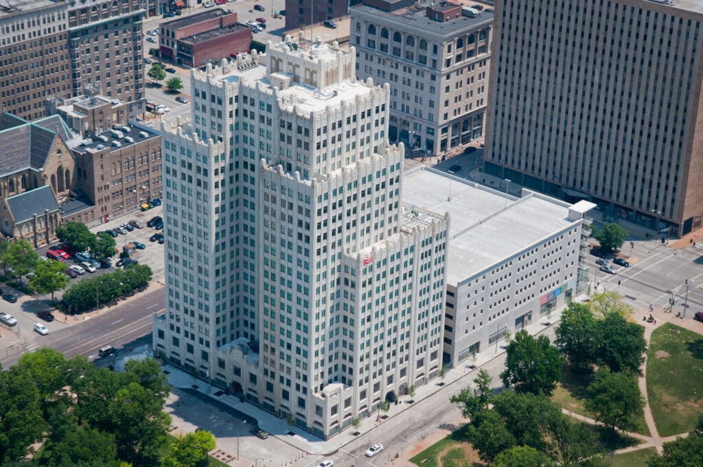 Park Pacific combines a 23-story art deco style historic building and a new seven-story structure, to create a 750,000 sq. ft. mixed-use development. The 500,000 sq. ft. historic building, Parkside Tower, includes 230 rental apartments with 31,000 sq. ft. of ground-floor retail and 47,000 sq. ft. of Class A office space. A conference facility, lobby, and elevators are provided for office tenants with a separate entrance lobby for residents. An indoor amenity deck, with exercise facility, game room, and media room, is located on the 22nd floor. The facility includes a 590 car parking garage with retail space on the ground floor.
