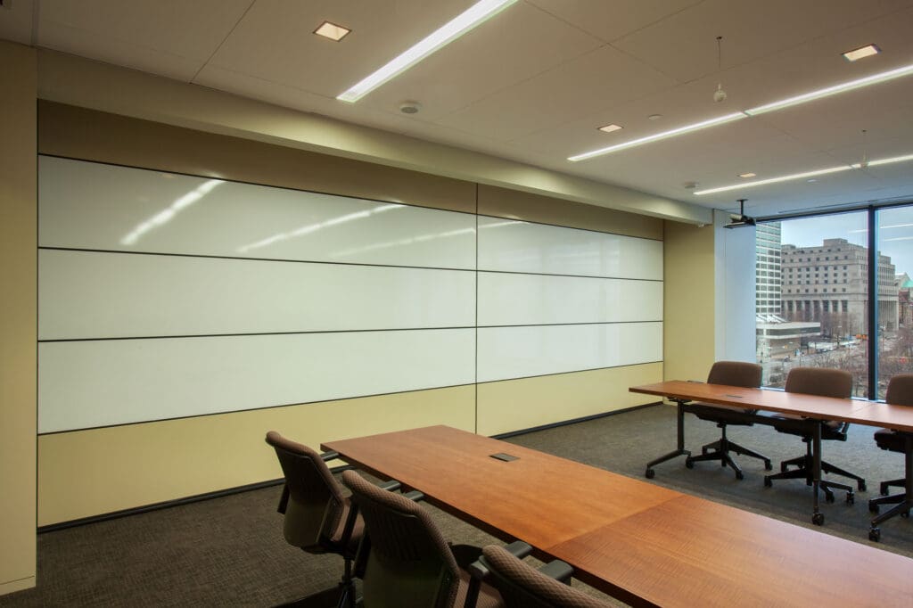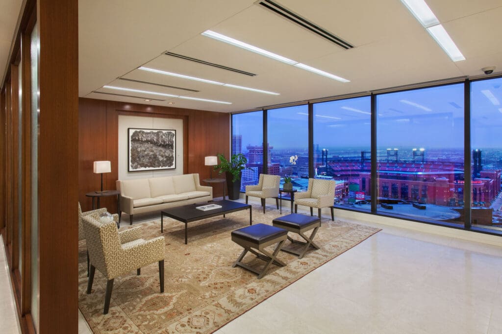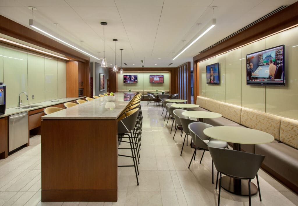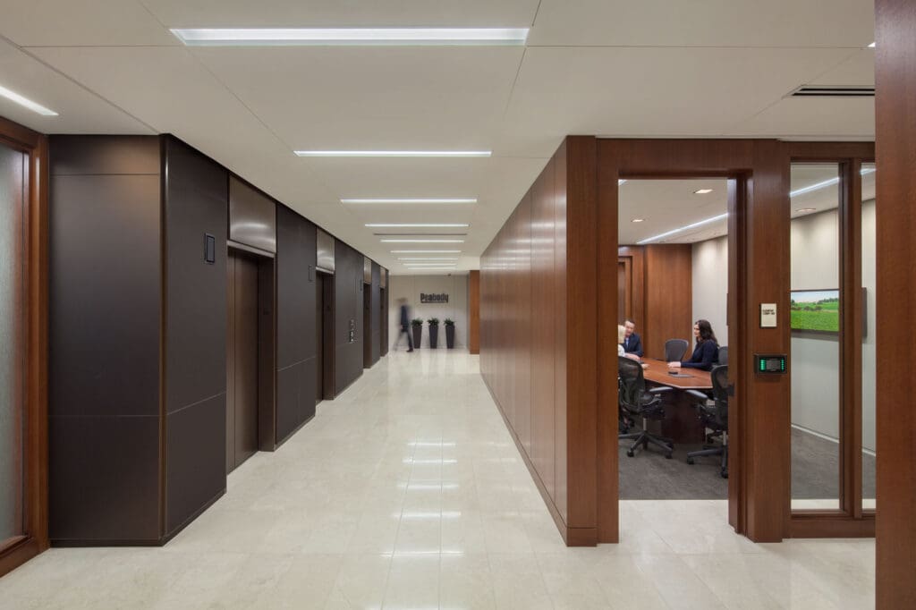 This interior build-out project included a 47,000 sq. ft. renovation of the 2nd, 4th, and 14th floors in the Peabody Plaza Building. The final space includes a new fitness area, executive offices and a boardroom with high-end finishes and millwork, and a new MEP system all completed in five months.