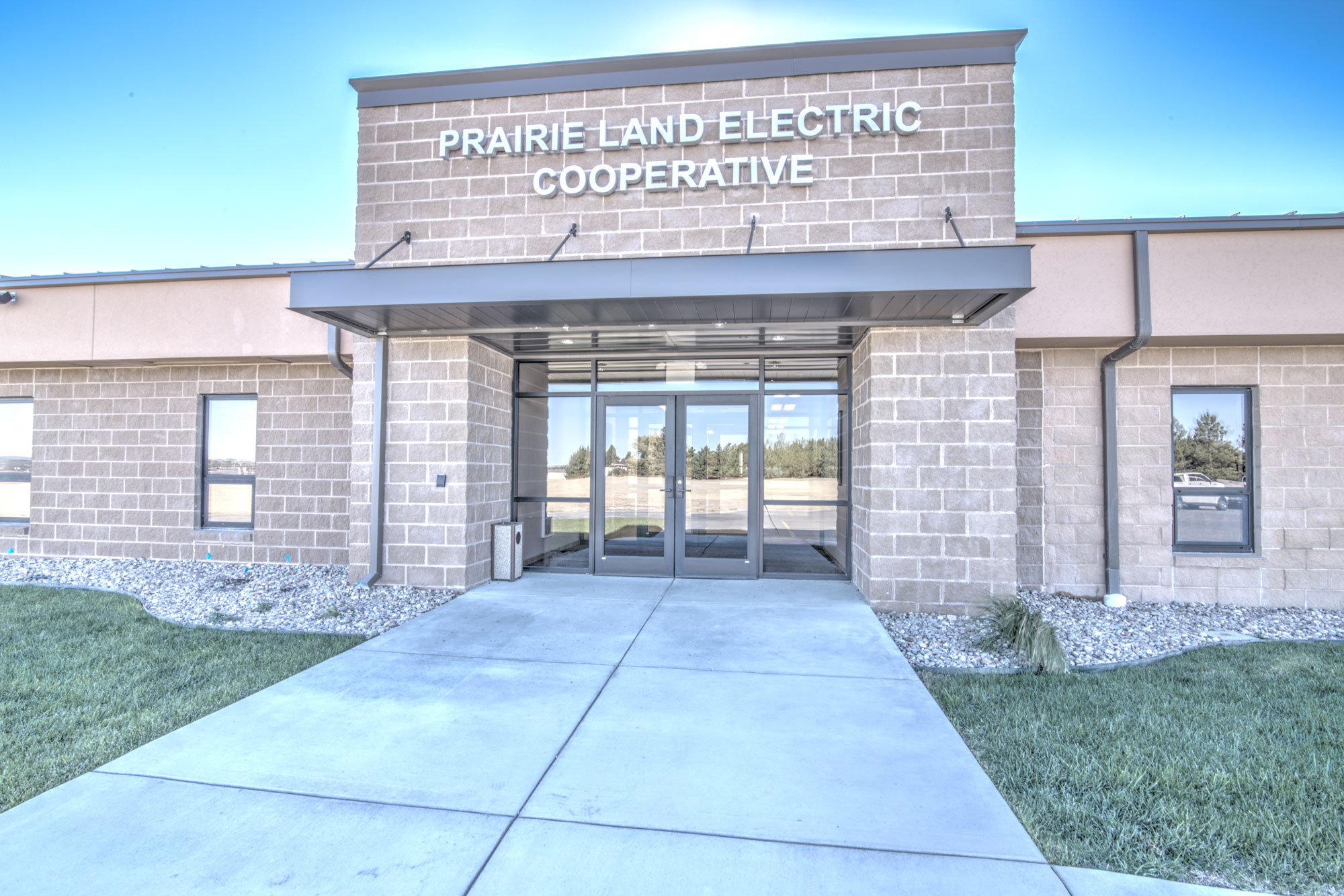 This 9,648 sq. ft. existing main level of the office for Prairie Land Electric Cooperative is a pre-engineered metal building structure with a standing seam metal roof. The exterior walls have a split face block veneer, insulated aluminum windows, and an EIFS soffit and fascia. There is a 3,888 sq. ft. existing partial basement which is adjacent to the new office building. The addition is two levels with 4,320 sq. ft. of office space on the upper level and the same square footage was added to the lower level. The structure is made up of a conventional steel frame with metal stud walls with spray foam insulation and has a split face block veneer. The addition matches the existing building in appearance. The new building entry element leads to a secure lobby space that serves the members for their customer service and billing needs. The basement includes a new server room, file room, and mechanical room. The remainder of the lower level space is a meeting room addition which connects to the original meeting room. All work was completed while the facility was open for operation.