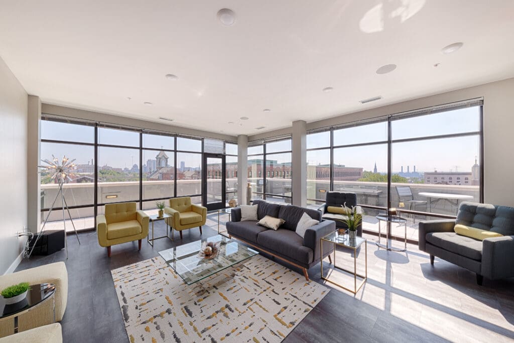 In addition to being in close proximity to bars, restaurants, and downtown, residents enjoy modern amenities including a rooftop pool and sundeck, club room, fitness and yoga studio, library and business center, and a premium penthouse level.