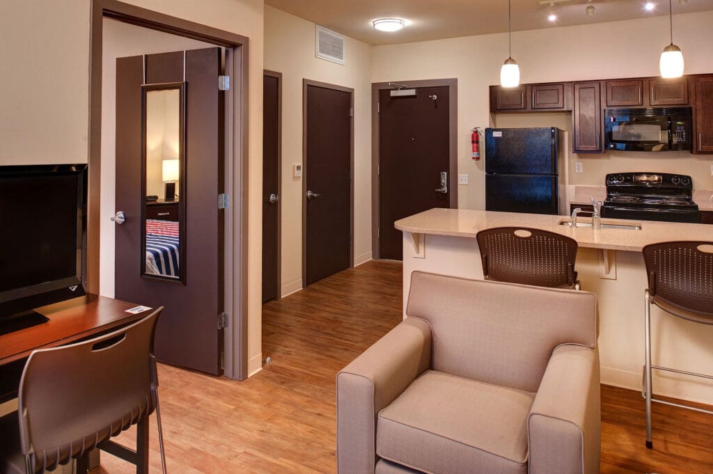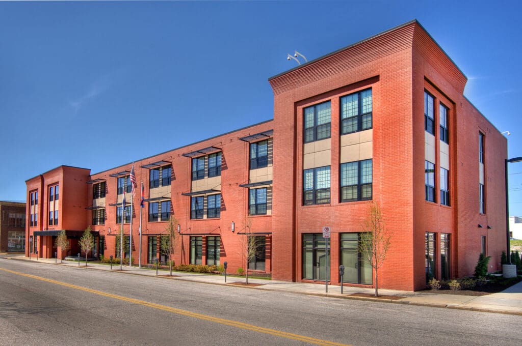This $9 million, three-story, 48-unit apartment building serves as a bridge for men and women returning from combat as they reintegrate themselves into daily life. The building features marble countertops, top of the line appliances and a computer lab for residents.