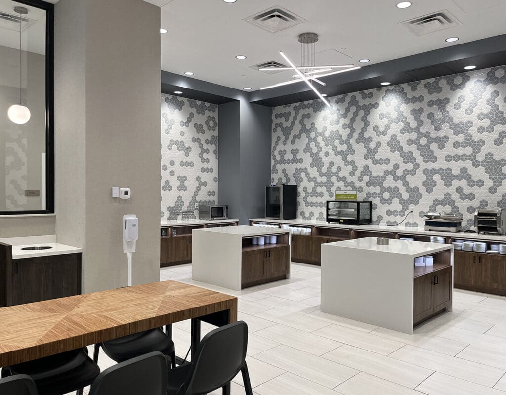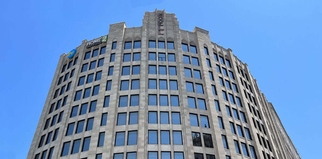 This project includes the historic renovation of the 12-story Shell Petroleum Building. The historic facade and elevator lobbies were preserved and repaired and the space has been transformed into a dual-branded Hilton Hotel. The Home 2 Suites offers 126 guest rooms, Tru has 75 guest rooms. Amenities include public lounge spaces, meeting spaces, and a fitness center.