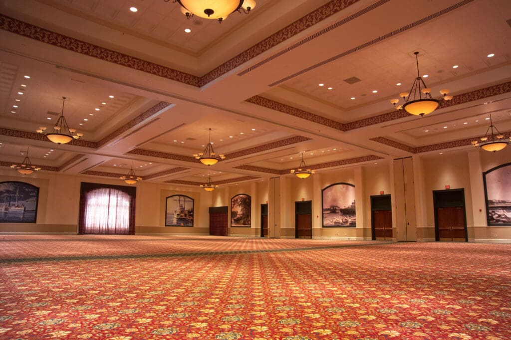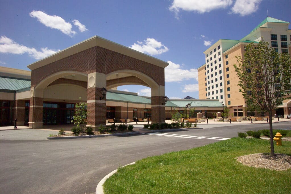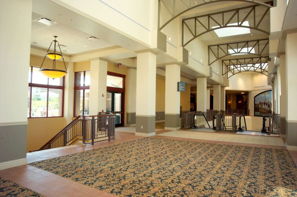 The 154,000 sq.ft., two-story convention center houses a 16,250 sq.ft. ballroom, 15 meeting rooms, a cybercafé, wireless internet access and a 32,000 sq.ft. exhibit hall. Immediately adjacent to the convention center is a 250 room Embassy Suites Hotel. High standards were set for craftsmanship and Early American theme development. Even a compass “rose” was put in the floor (common in Early American homes).