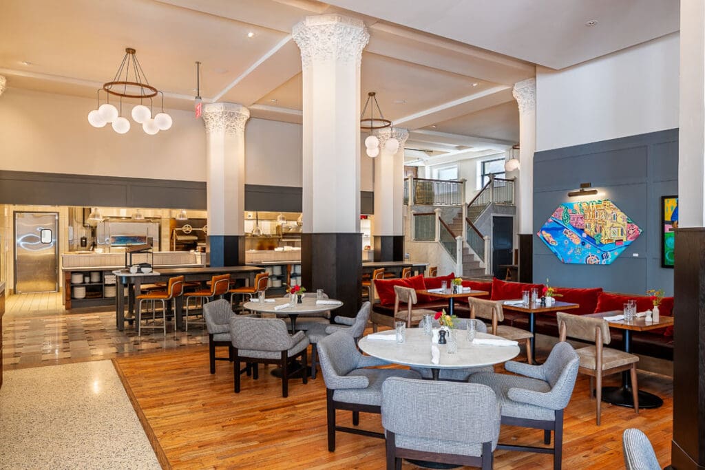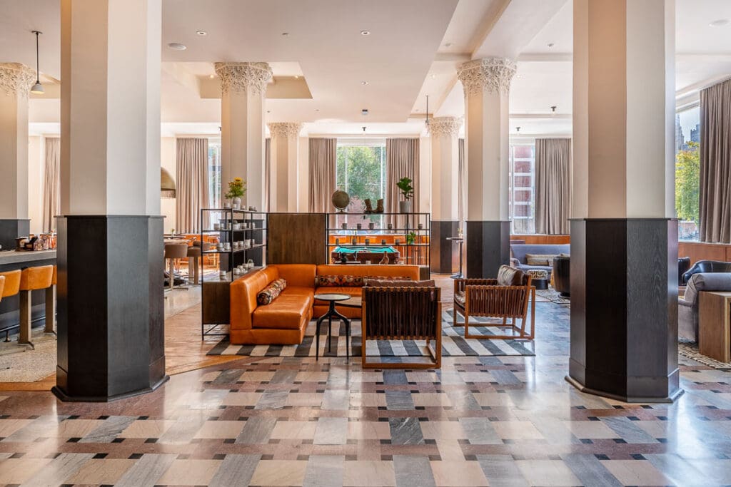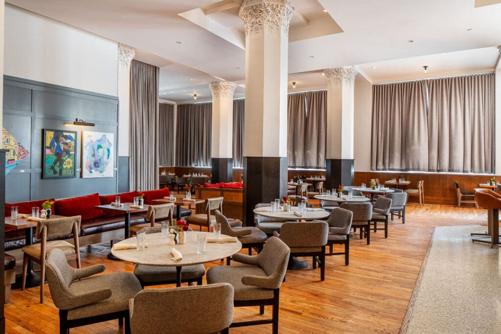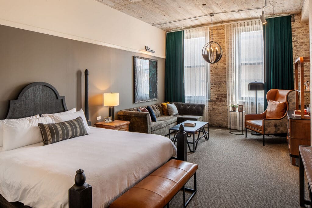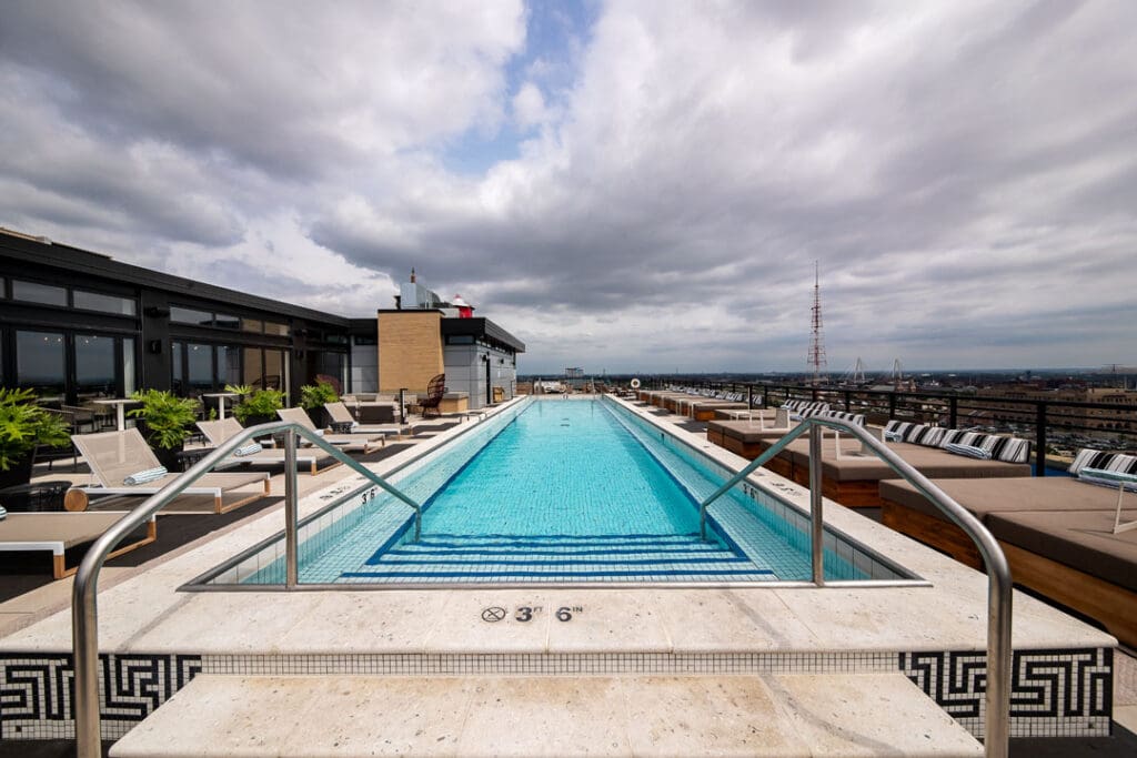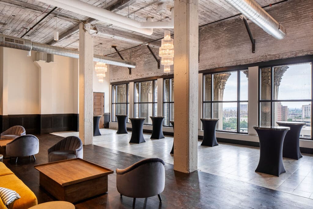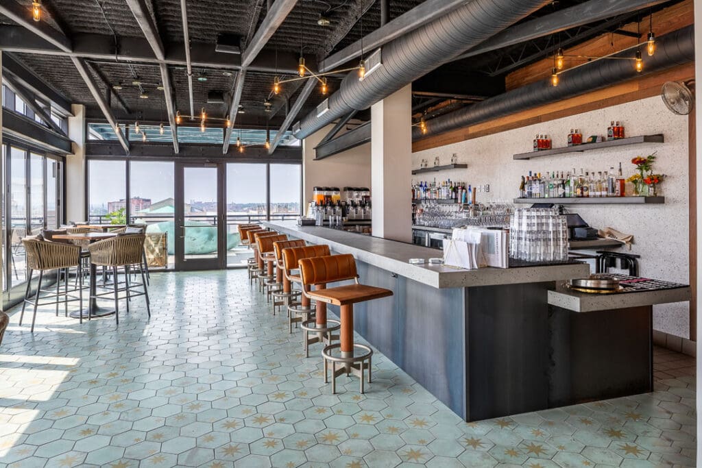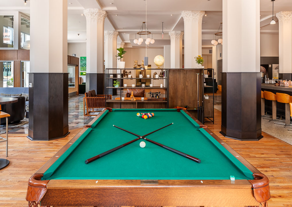 The Last Hotel is a historic renovation of the International Shoe Building in downtown St. Louis. Built in 1909 and designed by Union Station architect Theodore C. Link, the ten-story, 160,000 sq. ft. structure was transformed into a 142-room boutique hotel featuring original barrel ceilings, and brick walls. The hotel includes a blue roof system, a rooftop bar and pool, a movie screening room, a teaching kitchen, and banquet facilities. The first-floor Last Kitchen & Bar showcases American-style dishes inspired by cities along the Mississippi River.