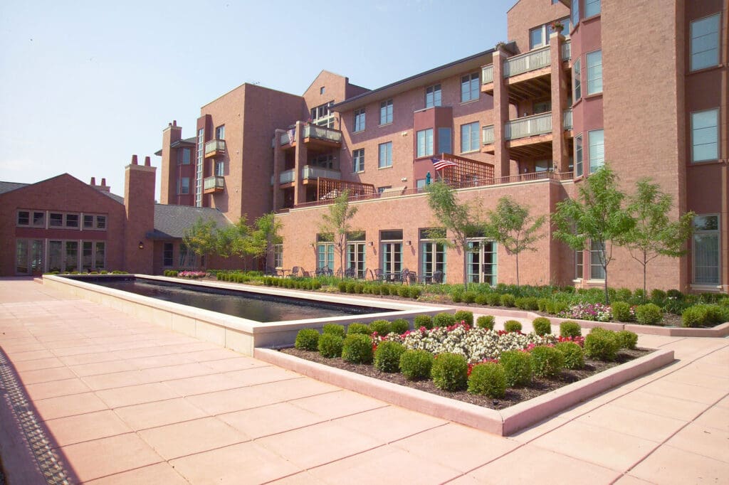 This 120,000 sq. ft. luxury retirement community is located in Chesterfield, Missouri. The first two phases consisted of two four-story buildings with underground parking. Each building contains 24 independent living units ranging in size from 1,300 to 2,900 sq. ft. On-site amenities include a spa, indoor pool with a hot tub, fitness center, beauty shop, massage parlor, and classrooms for continuing education. In addition, residents enjoy full-service dining and private dining venues and a concierge service. The facilities are situated on a fifteen-acre site.