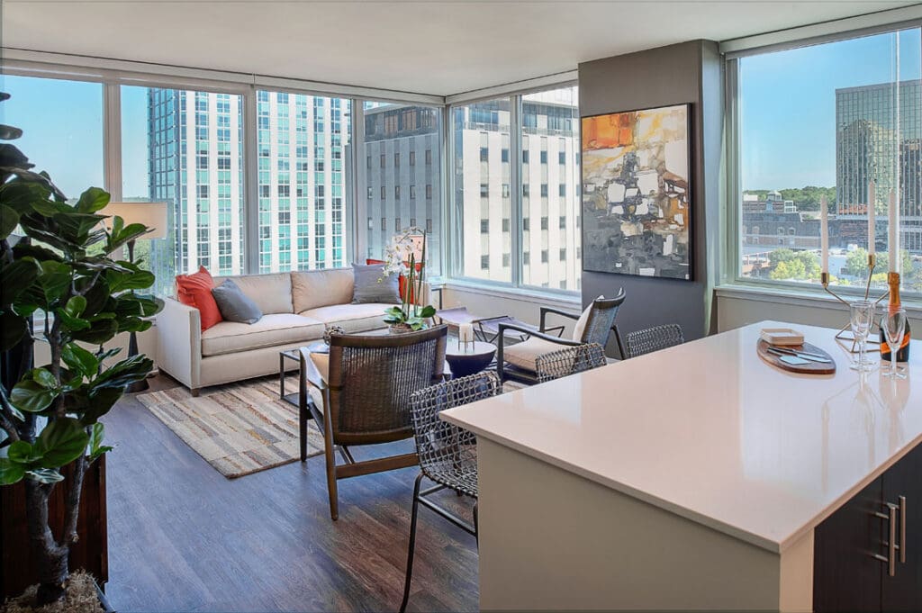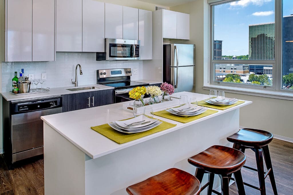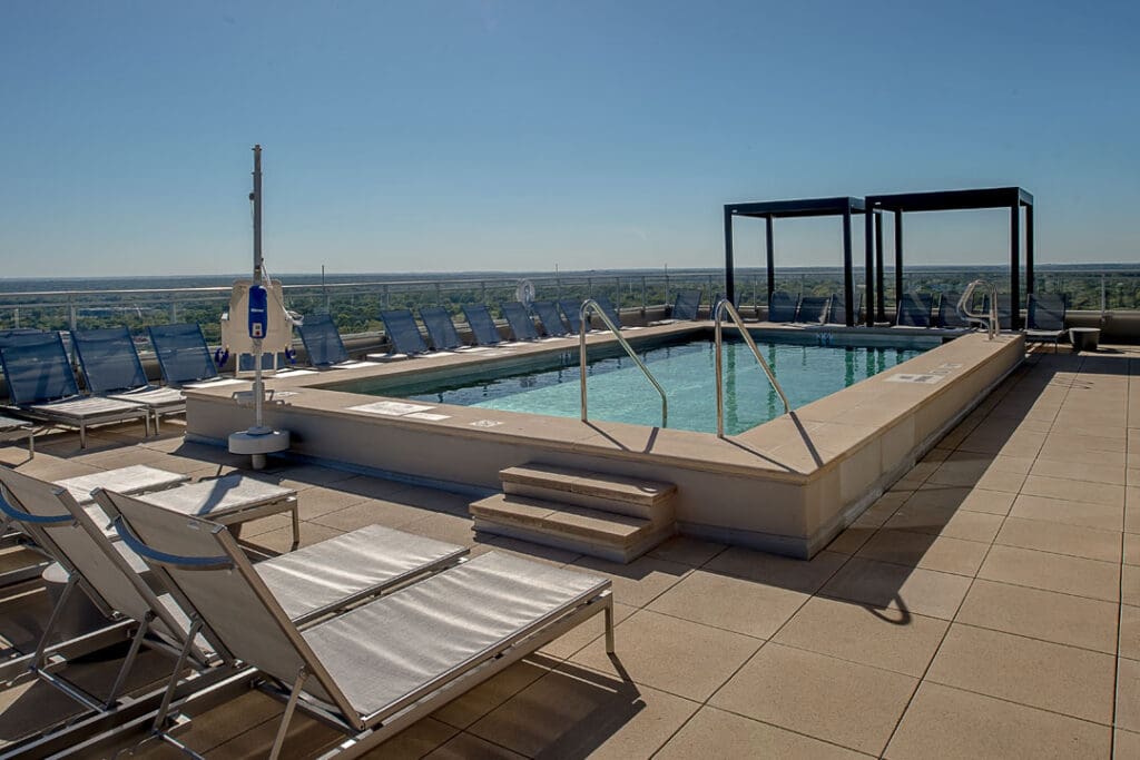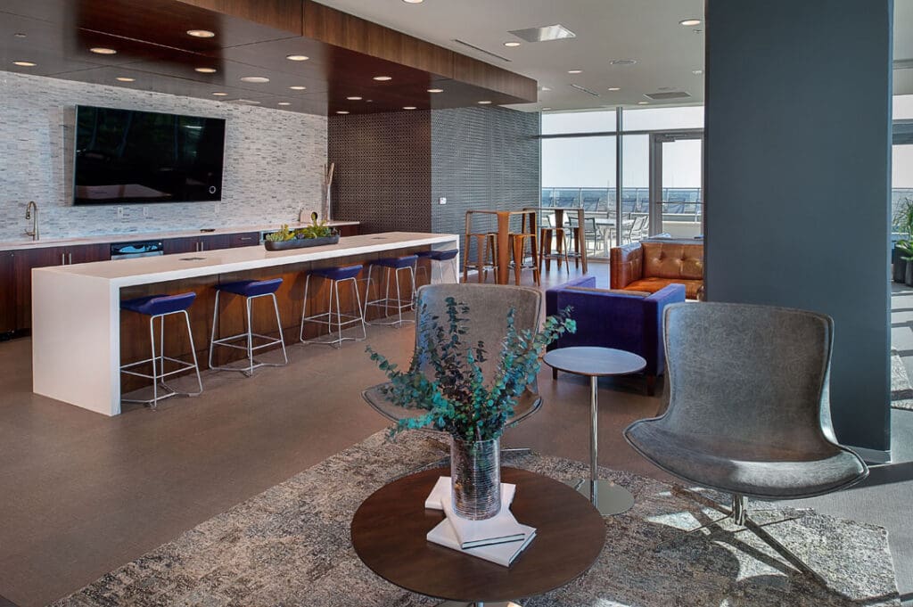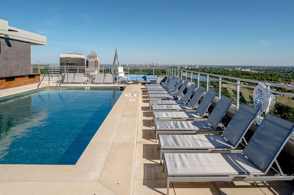 Two Twelve Clayton is a 26-story 394,566 sq. ft. mixed-use building and is the largest multi-family building to be constructed in Clayton in the last 30 years. The building includes 20 floors and 222,588 sq. ft. of luxury apartments and five levels of parking totaling 88,000 sq. ft. and 215 spaces. The first floor consists of 9,046 sq. ft. of retail space and the 6,151 sq. ft. rooftop amenity level includes a pool deck, lounge, chef’s kitchen, recreation room, and a fitness center. The walkout deck features views of downtown Clayton, Shaw Park, and the downtown St. Louis skyline. The residential floors include 250 units with one-bedroom, two-bedrooms, and three-bedroom options. Two Twelve Clayton is the first building in Clayton, Missouri to receive a Green Globes Certification.
