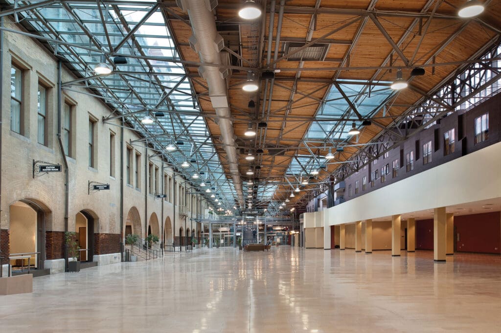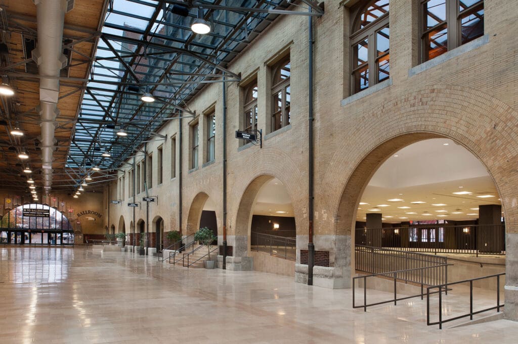 This project was a 56,000 sq ft. interior renovation of the Midway and Headhouse at Union Station. The space was originally a train station, but now houses conference rooms, exhibit space and restrooms. The renovation included high-end finishes such imported French tile.