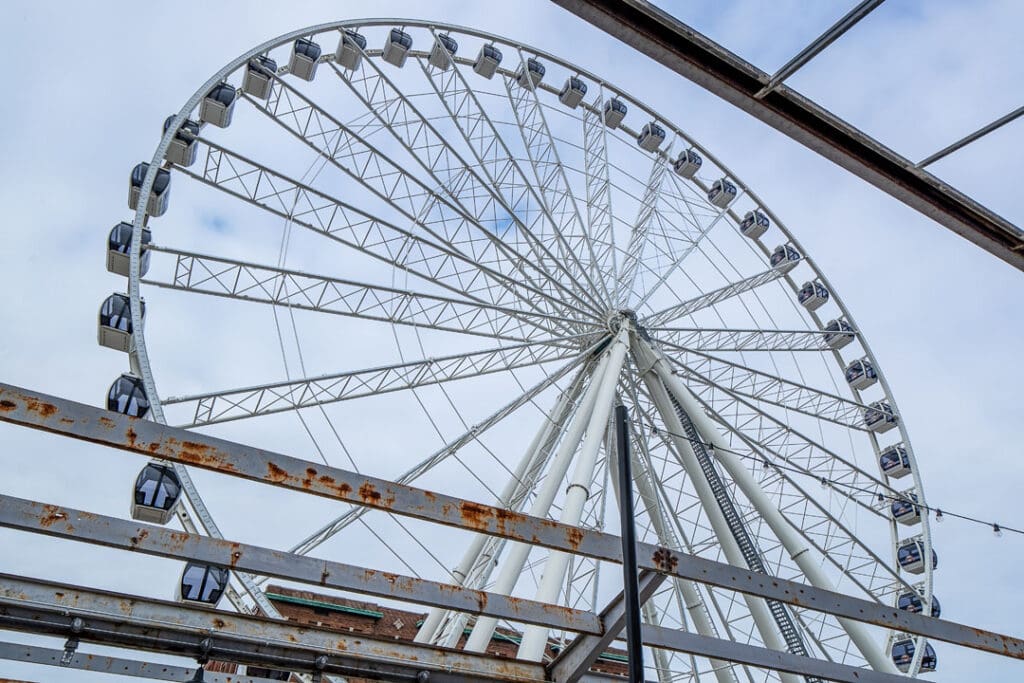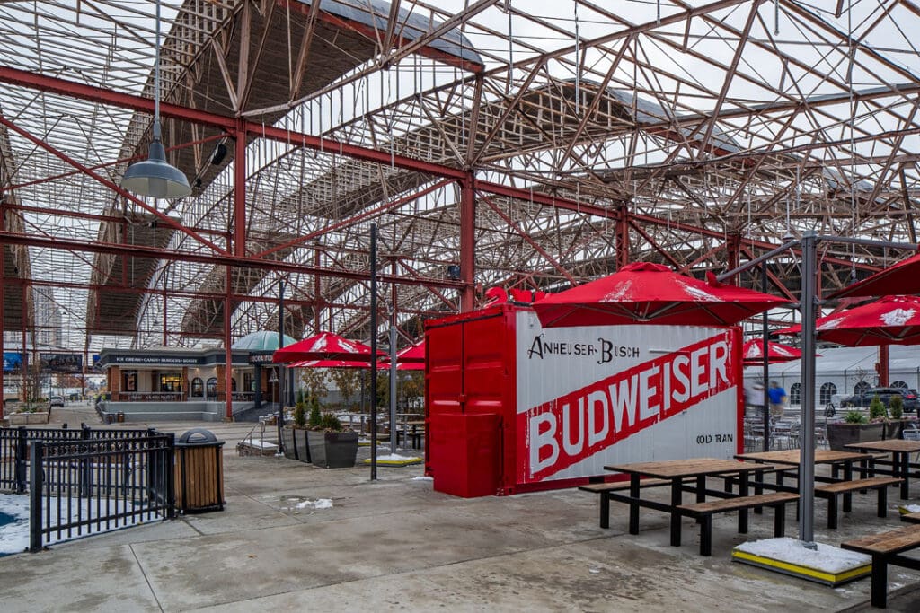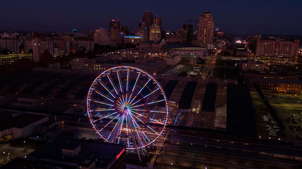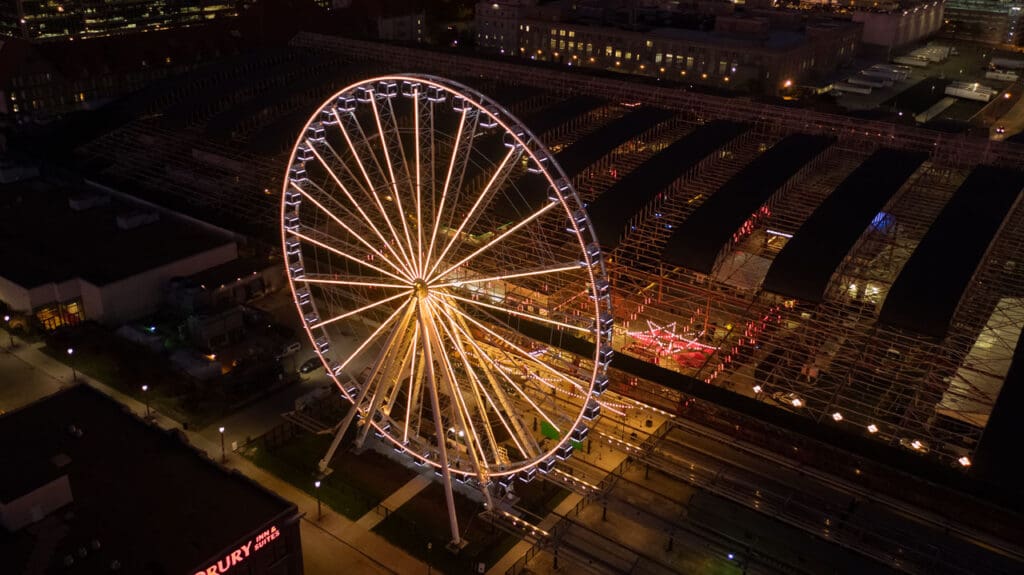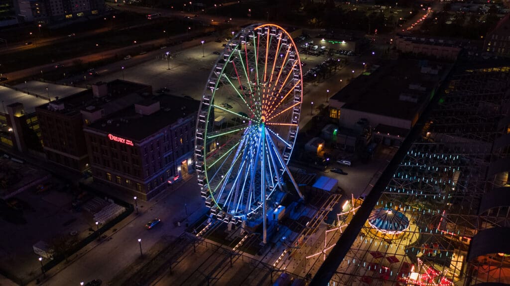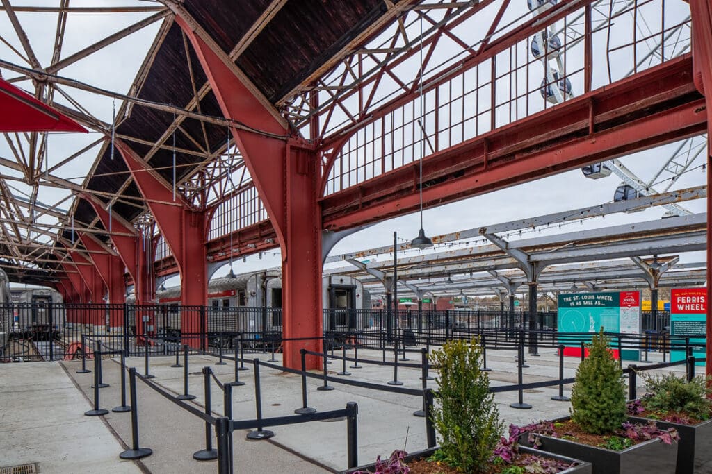 This project includes another round of exciting exterior improvements to the Train Park at Union Station. One of the most anticipated pieces of this project was the St. Louis Wheel, a 200-foot tall Ferris wheel installed near the former Hard Rock Cafe. The wheel features 42 enclosed gondolas and one VIP gondola with leather bucket seats, a stereo system, and a glass observation floor.