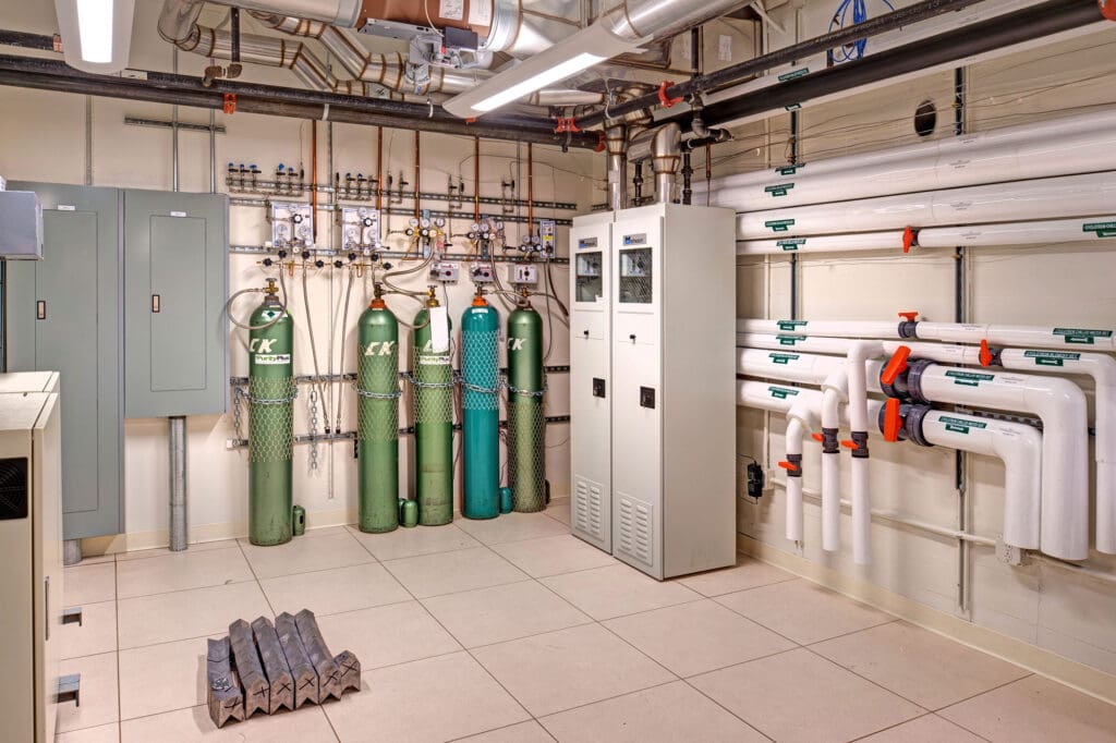 The interior renovation build-out consisted of additional Quality Control Labs, Reagent Labs, Equipment Rooms as well as Solid Target Rooms which are integral to the processing side of the Cyclotron.