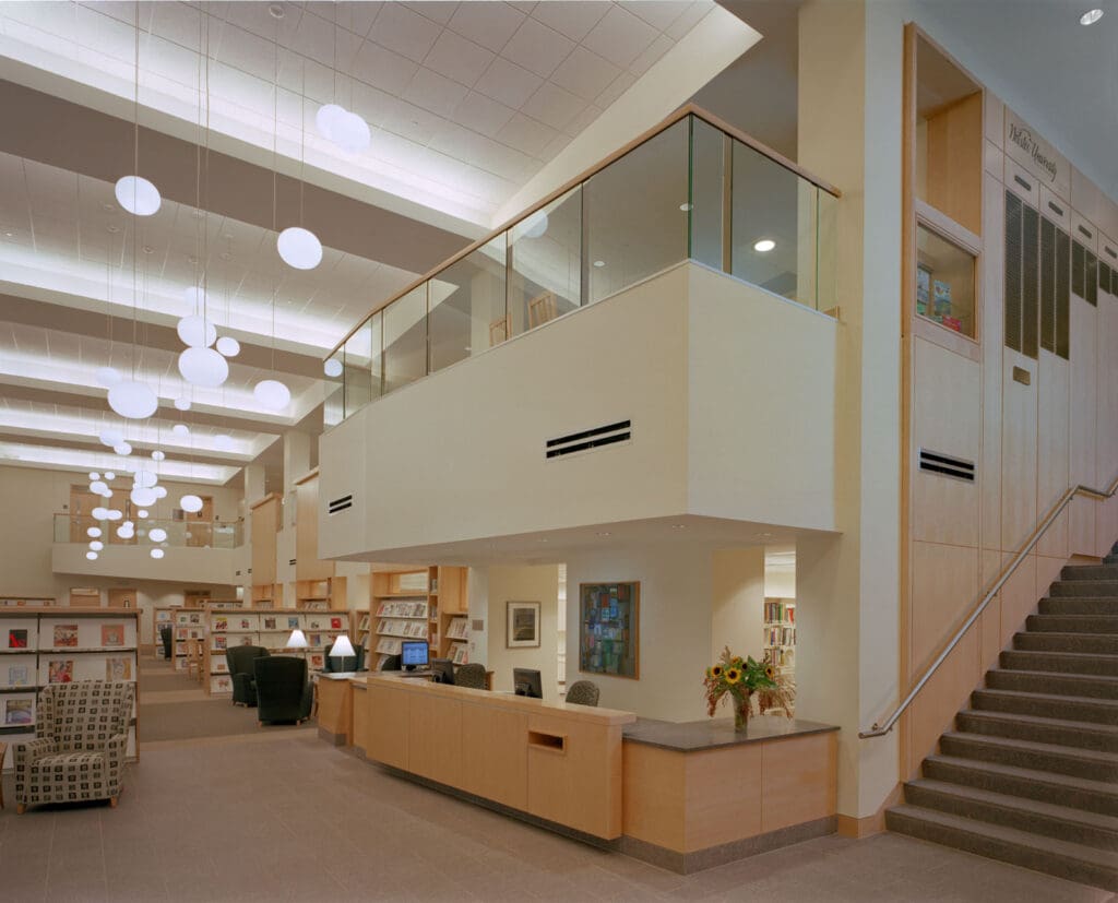 Webster University’s Emerson Library serves as the hub of the University’s worldwide campus. The 71,500 sq. ft. five-story library has access to 14,000 e-books and 15,000 text journals. A state-of-the-art lecture/conference hall seats up to 100 people for seminars, readings and receptions. The building also includes a video production and authoring space for faculty, an outdoor terrace, and a 24-hour cyber cafe.