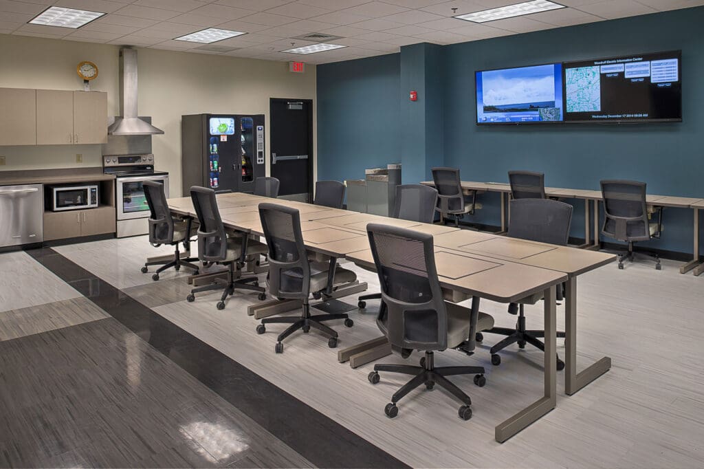 PARIC completed construction on a new facility for Woodruff Electric Cooperative in Forrest City, Arkansas. It is comprised of multiple building elements: the office, the warehouse, the vehicle storage area, and the vehicle maintenance area.